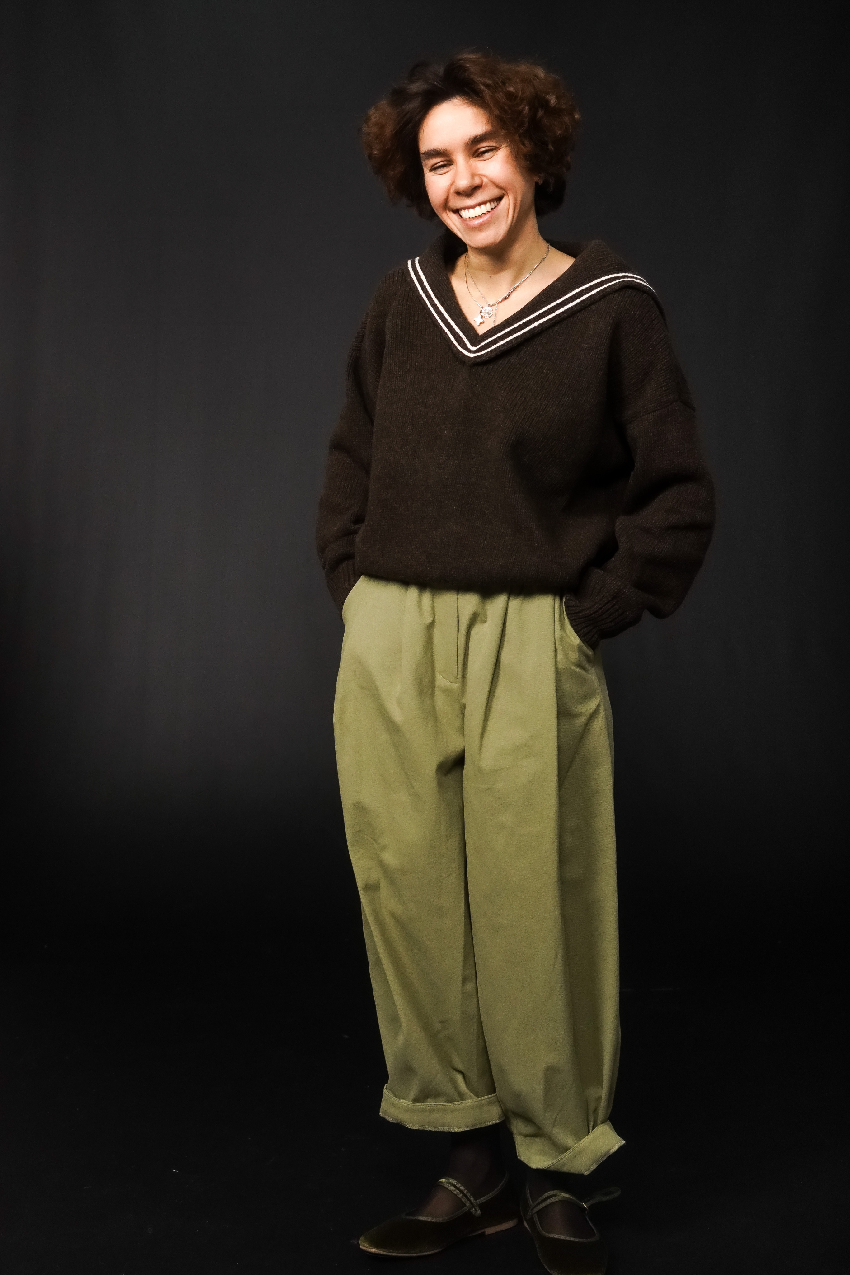 Брюки-бананы из плотной джинсы, есть карманы. Пояс на резинке.