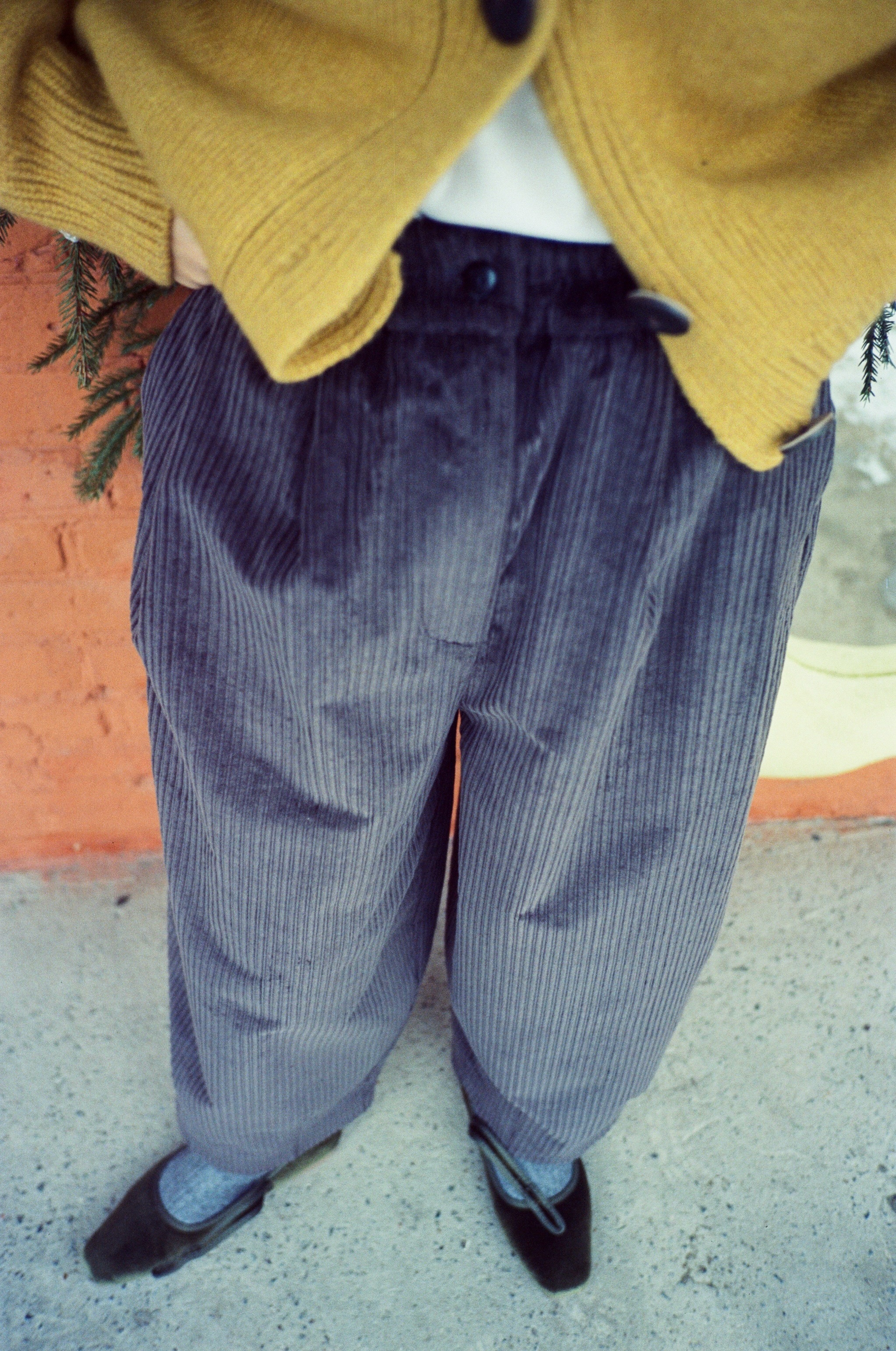 Брюки-бананы из вельвета, есть карманы. Пояс на резинке.