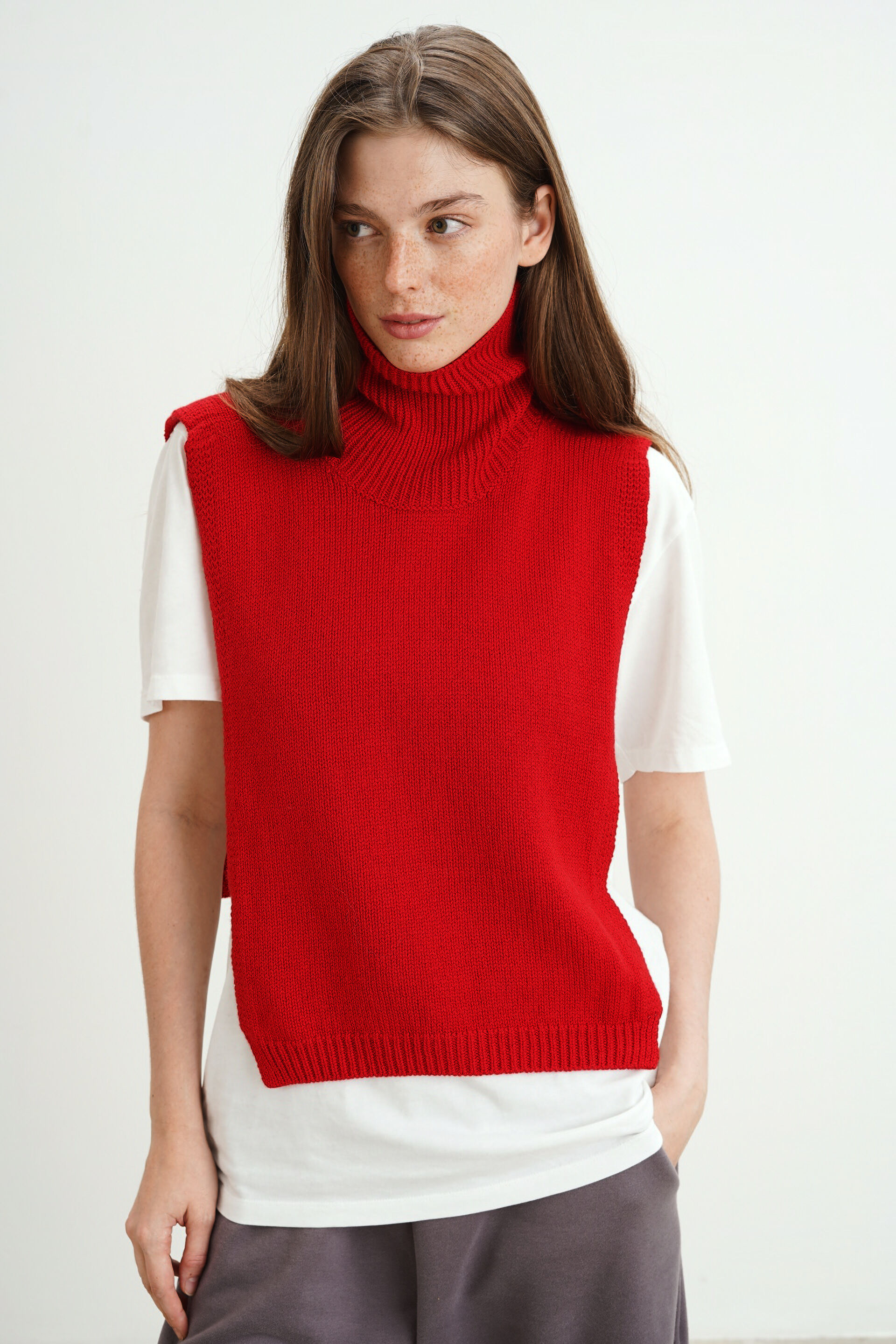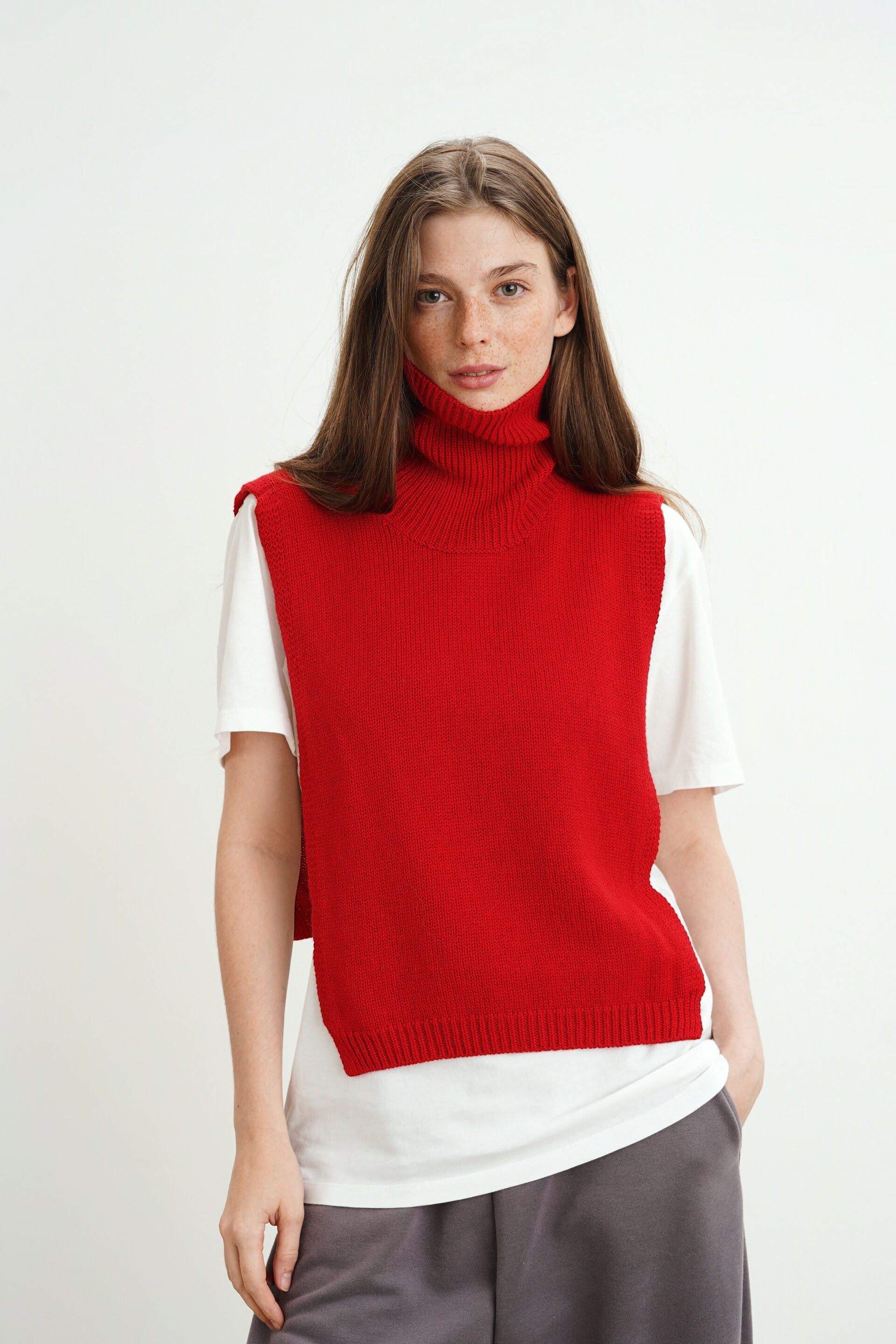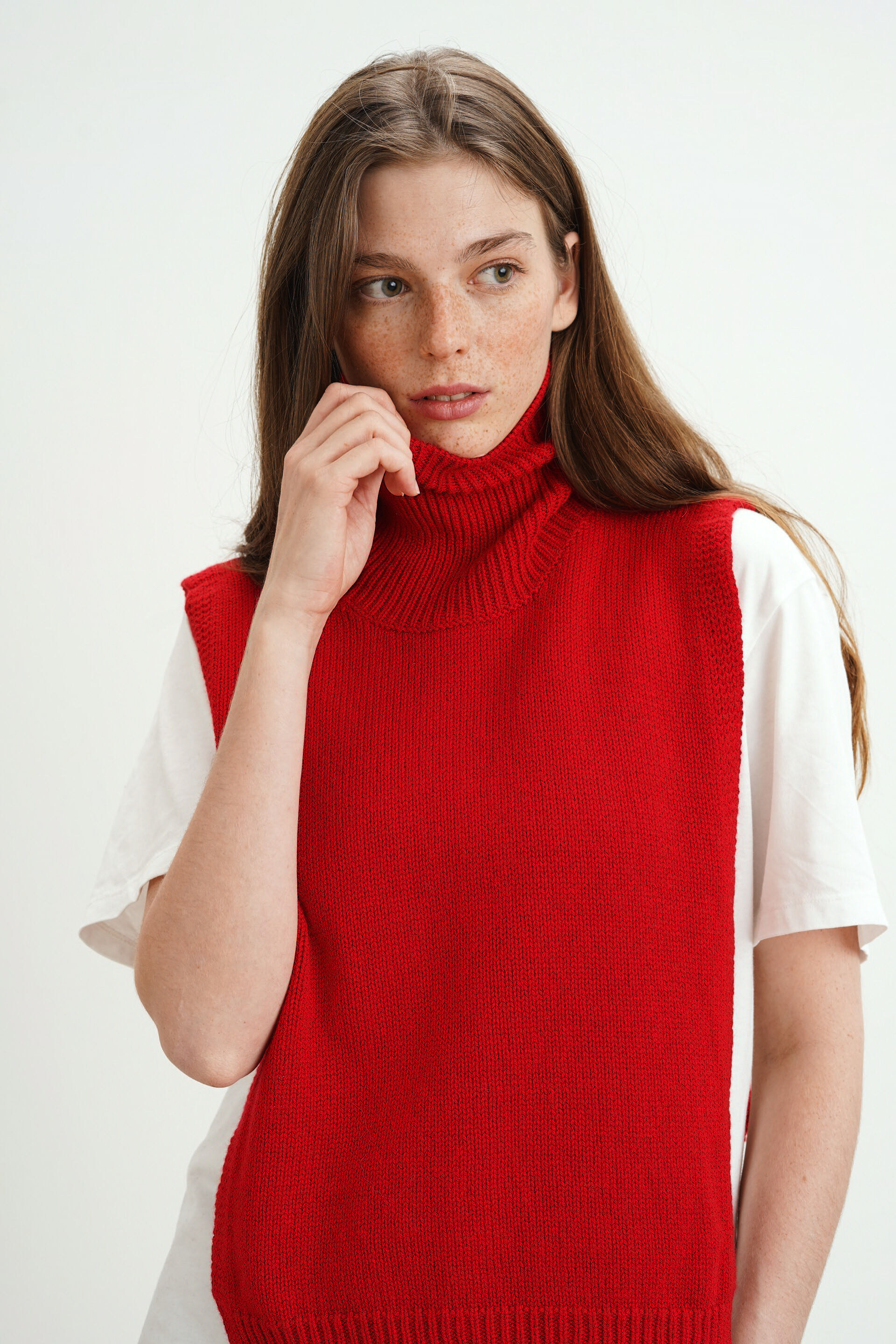 Манишка из кашемира с мериносом красного цвета