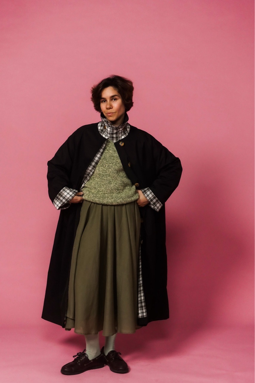 Плащ свободного кроя из ткани с пропиткой c водоотталкивающим эффектом. Плащ идет с подкладом, имеет закрытые швы, есть карманы. На горле перемычка.