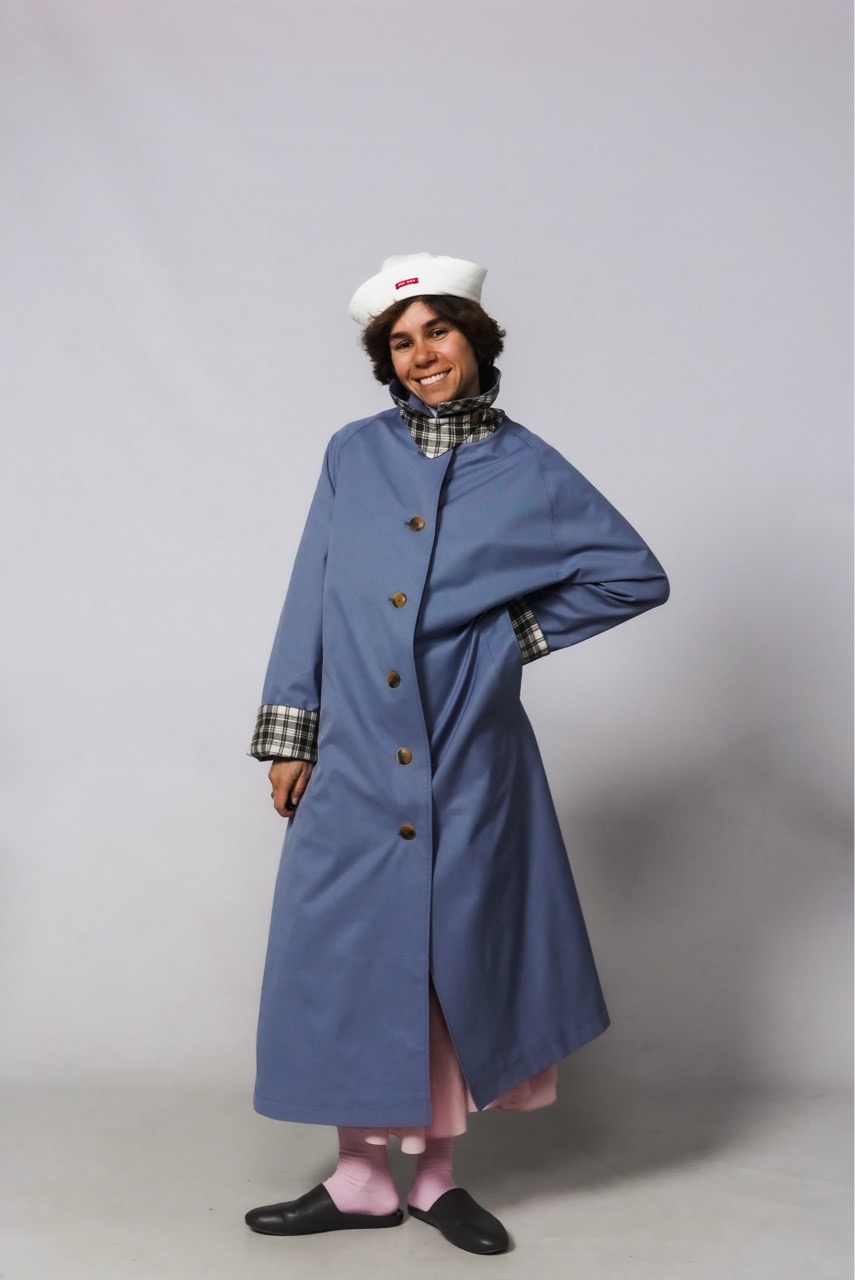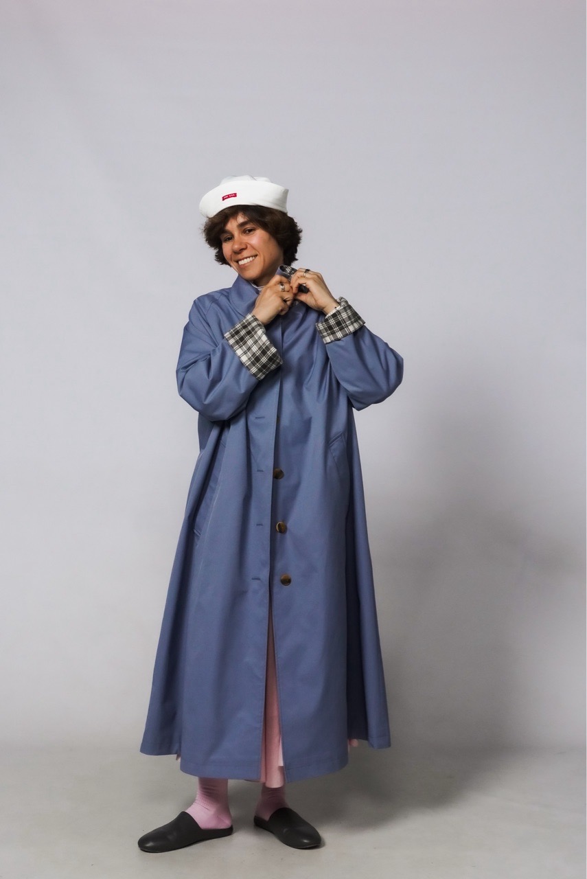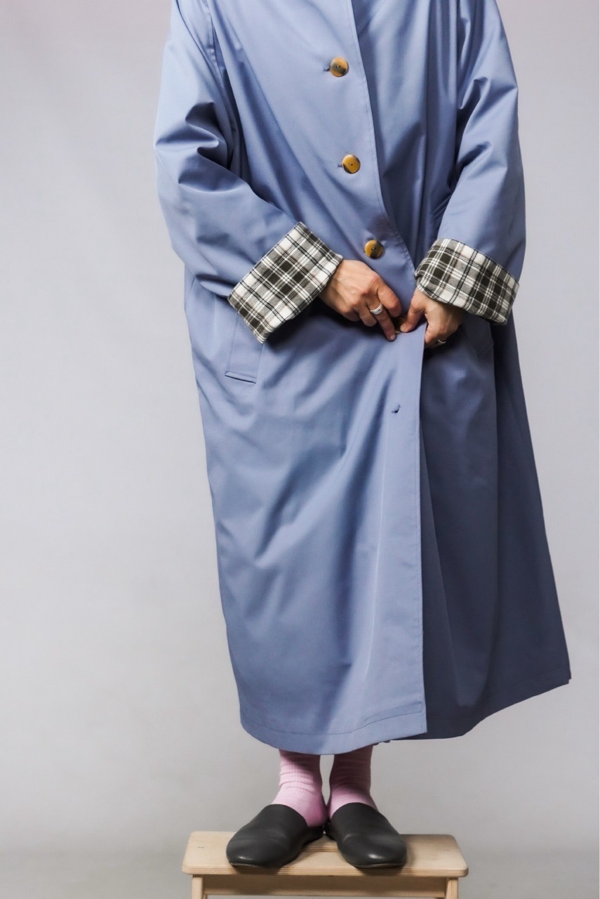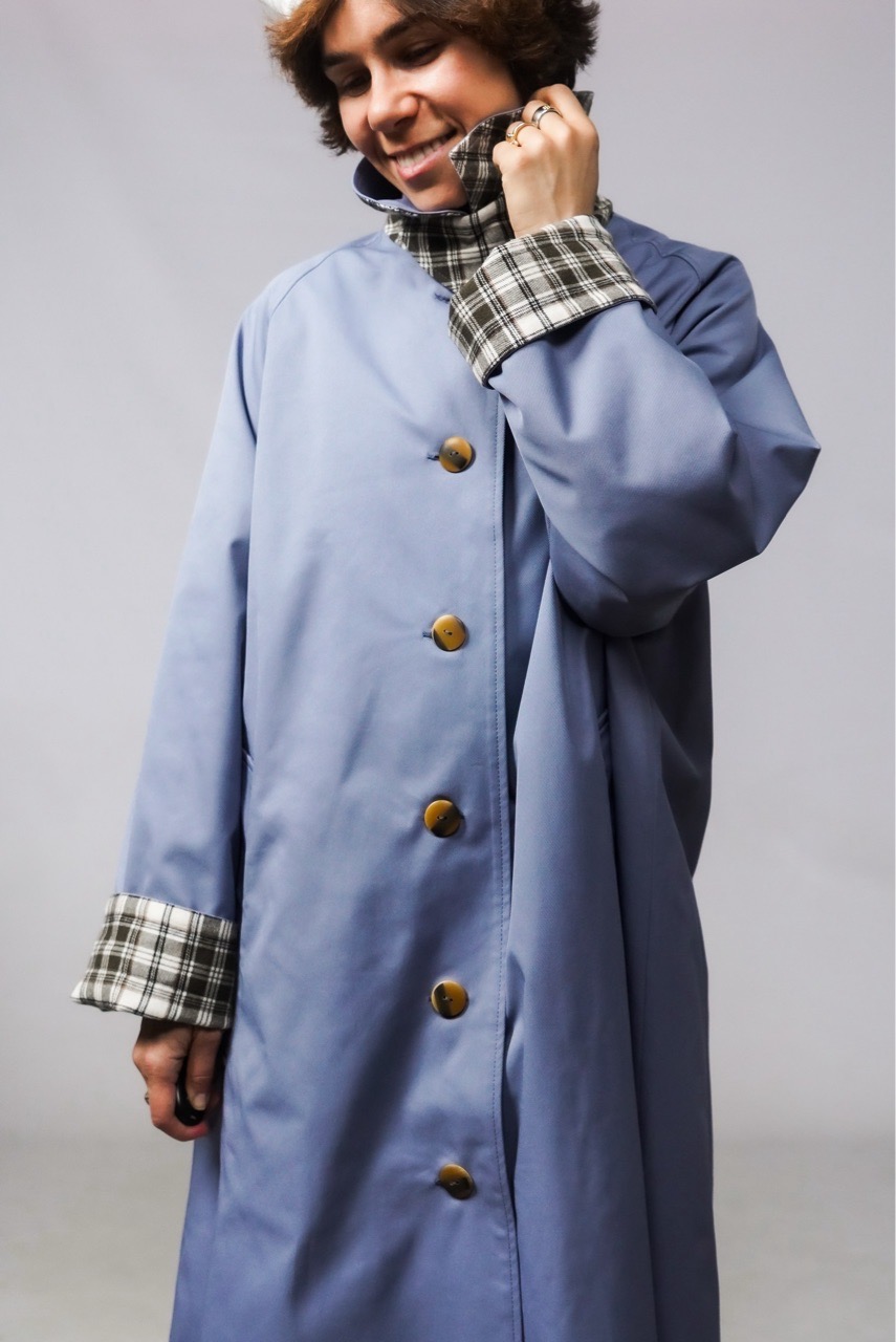 Плащ свободного кроя из ткани с пропиткой c водоотталкивающим эффектом. Плащ идет с подкладом, имеет закрытые швы, есть карманы. На горле перемычка.