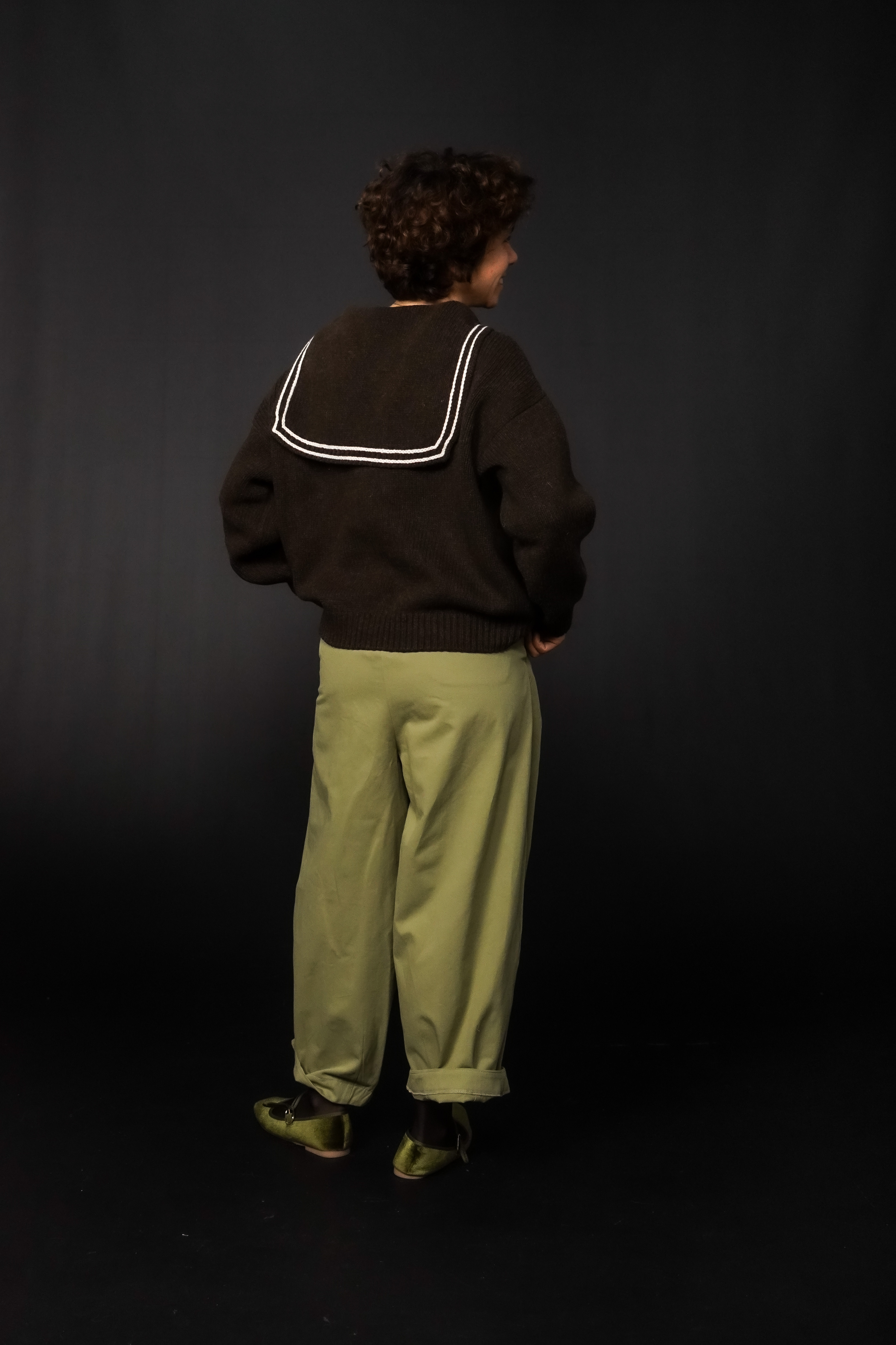 Мягкий пуловер из 100% мериносовой шерсти с акцентным воротником морячка — вещь, которая объединяет в себе комфорт и характер. Вдохновлён классикой морского стиля, он остаётся вне времени, а лаконичный крой позволяет легко вписать его как в повседневные образы, так и в более собранные комплекты.