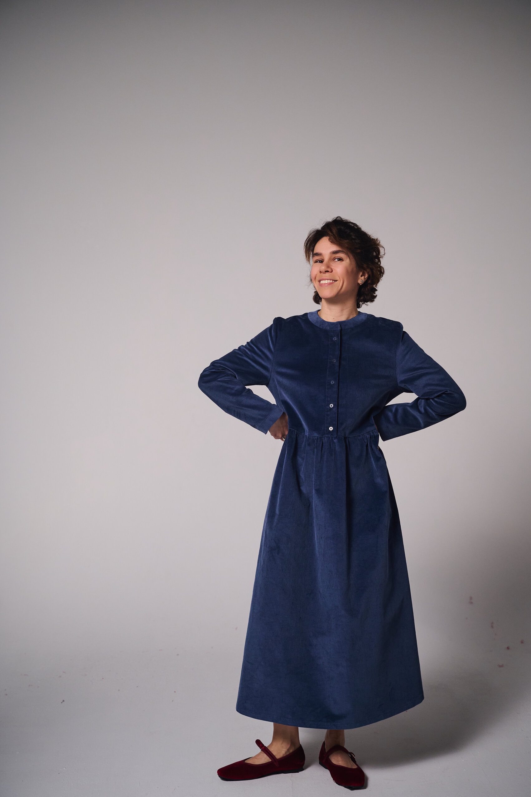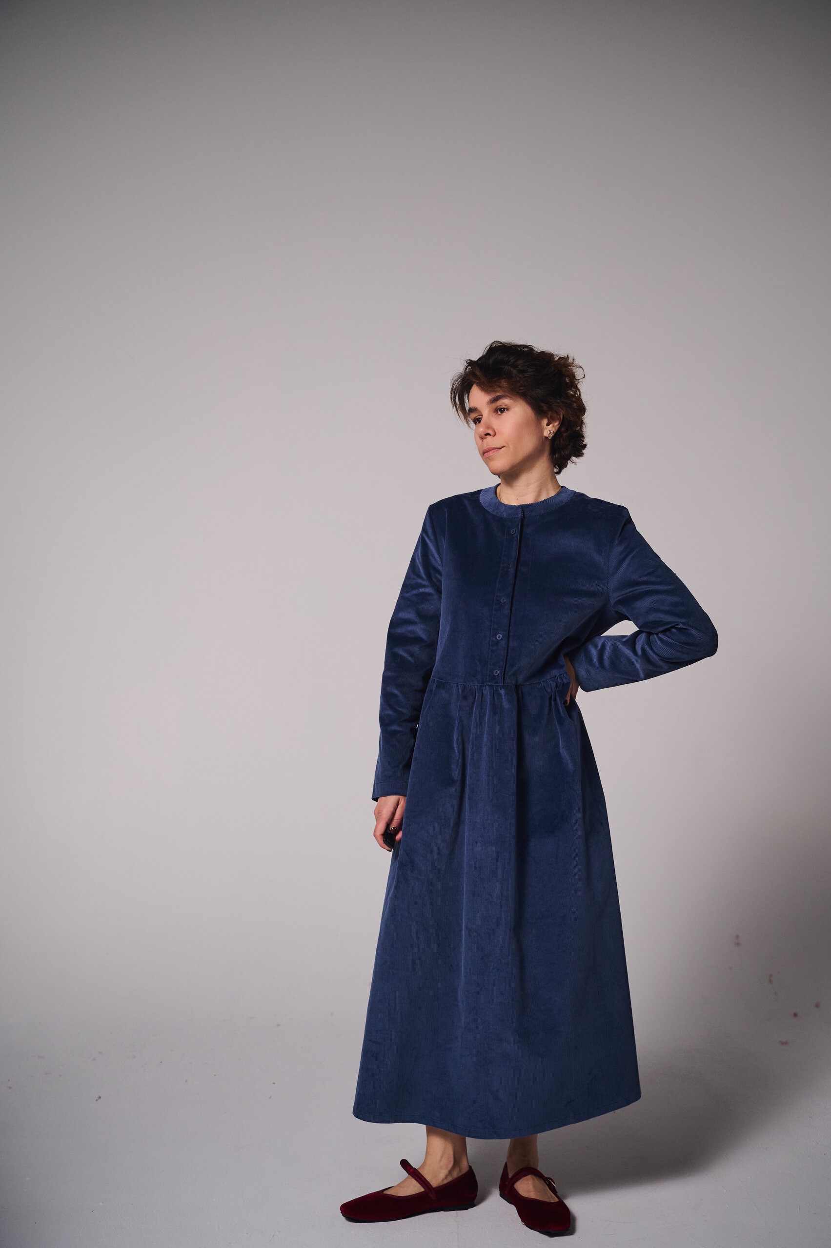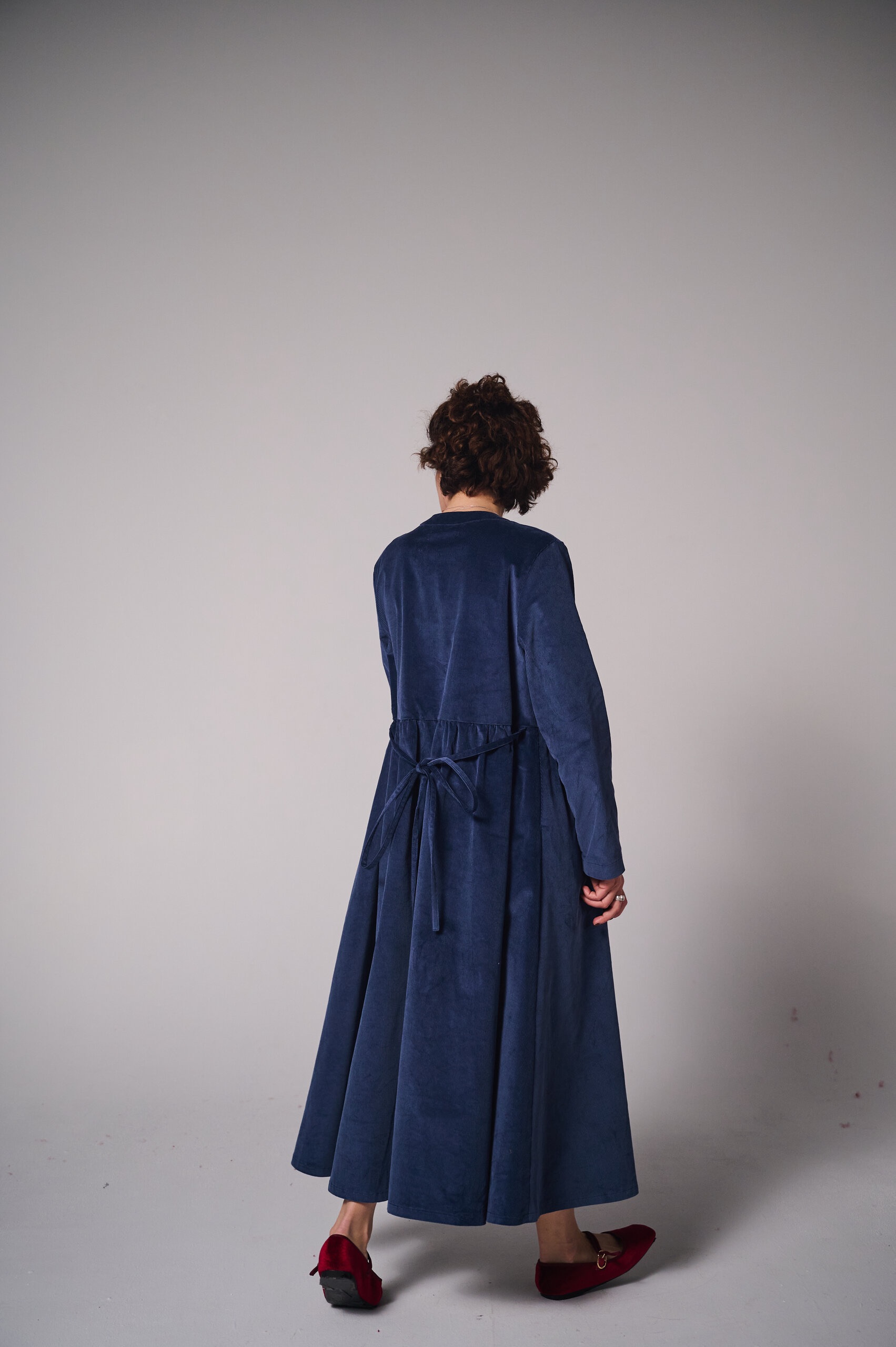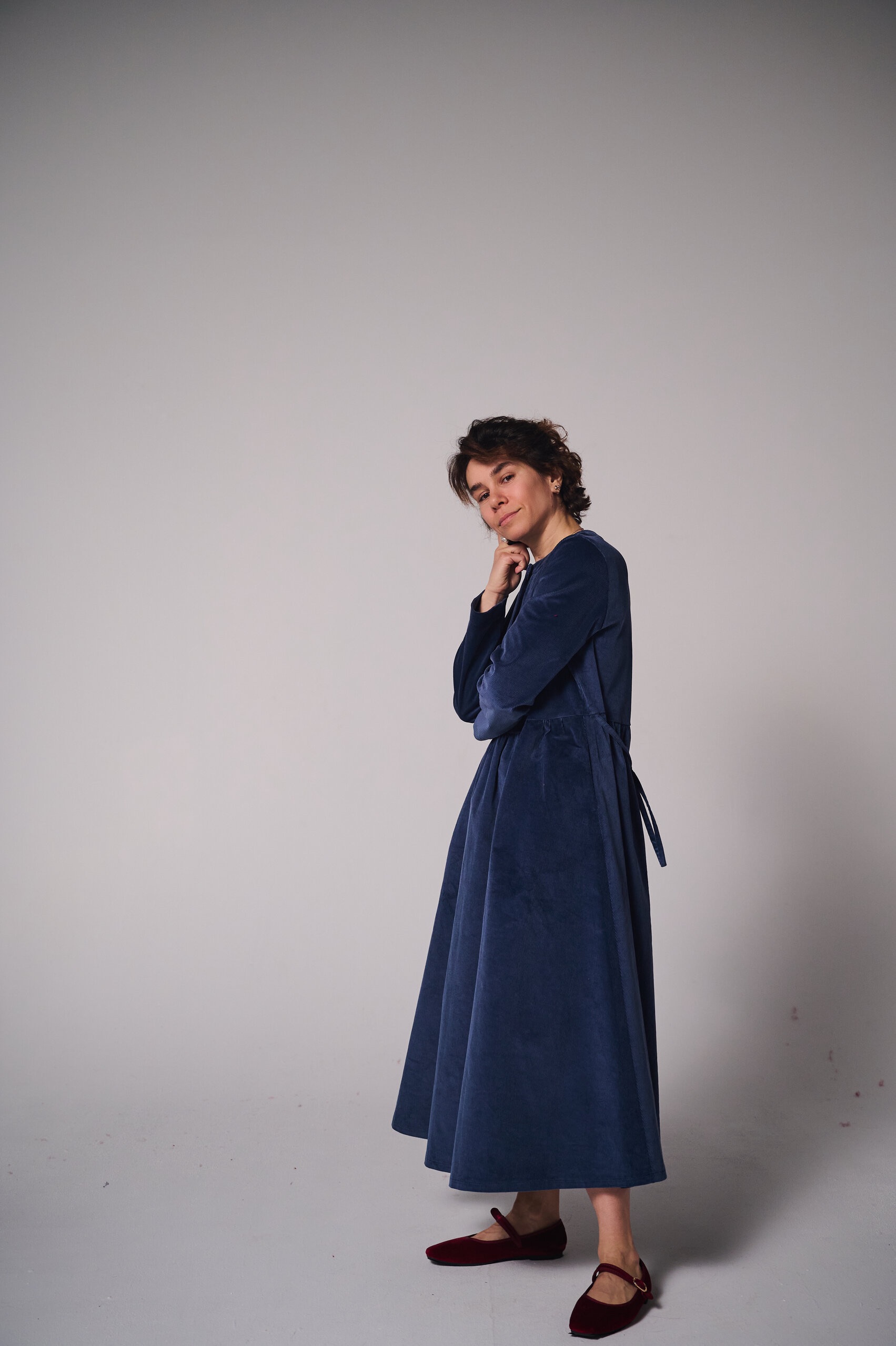 Платье свободного кроя с карманами. Пуговицы расстегиваются, по бокам платья есть завязки.