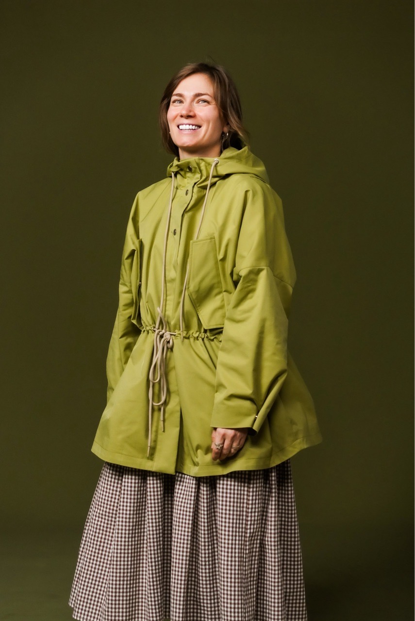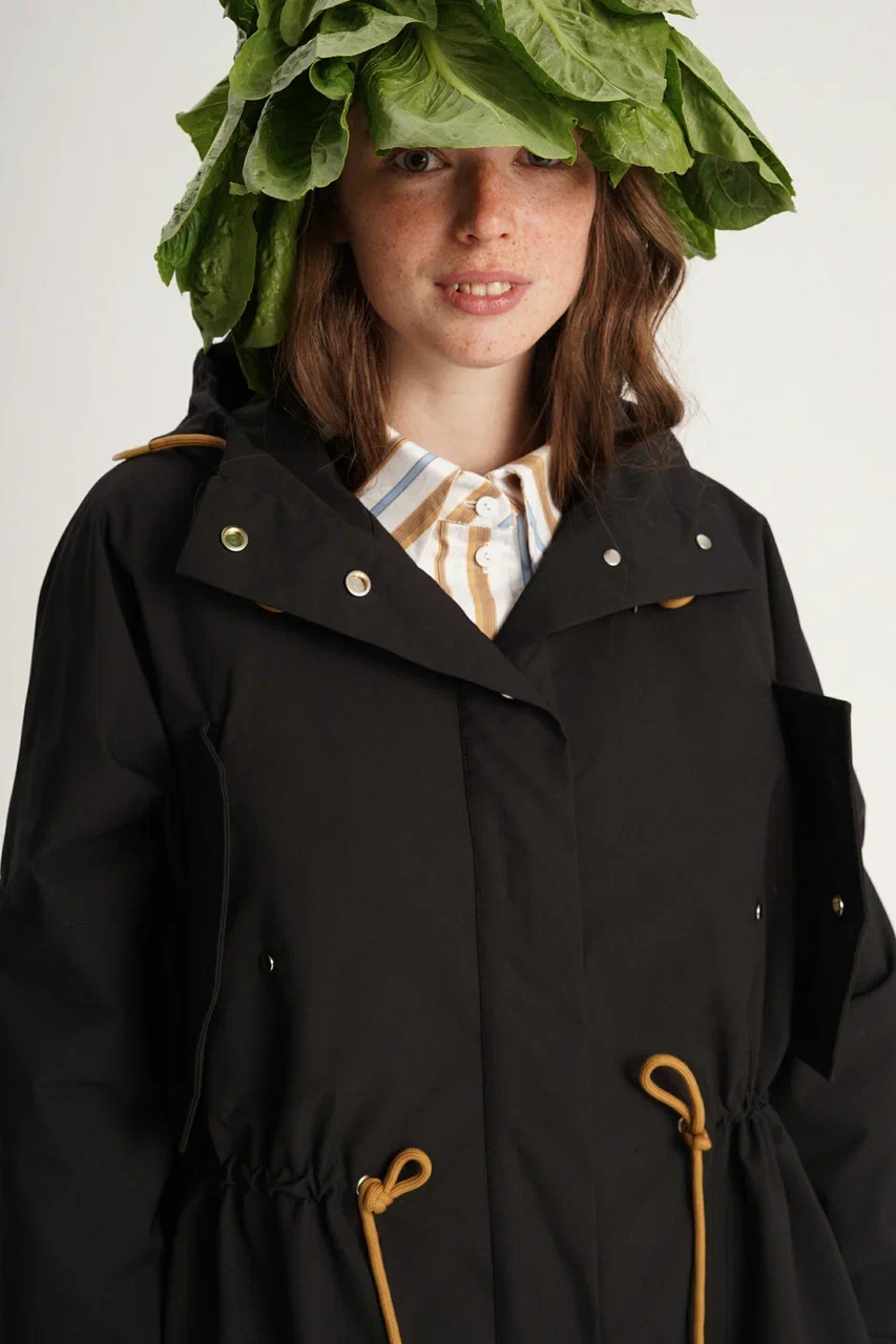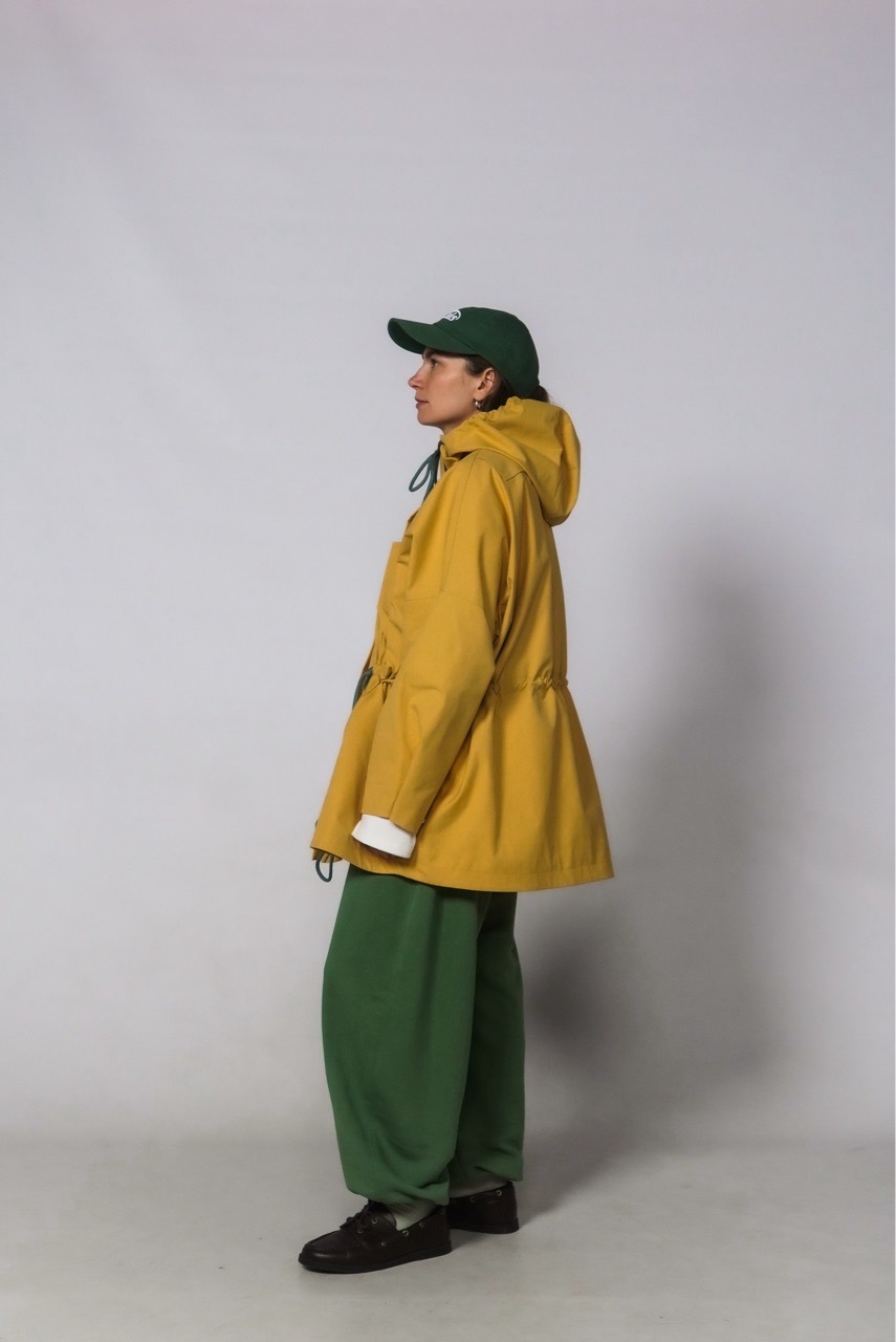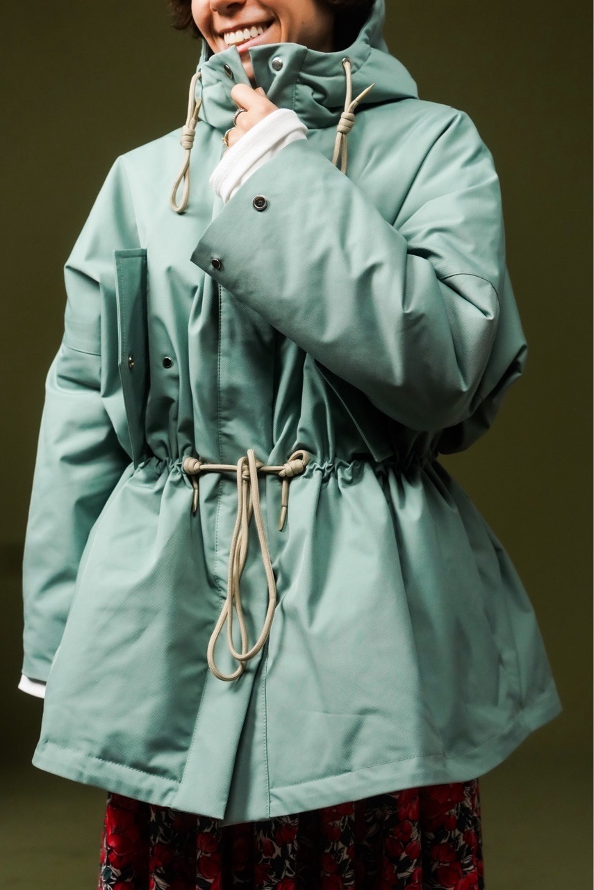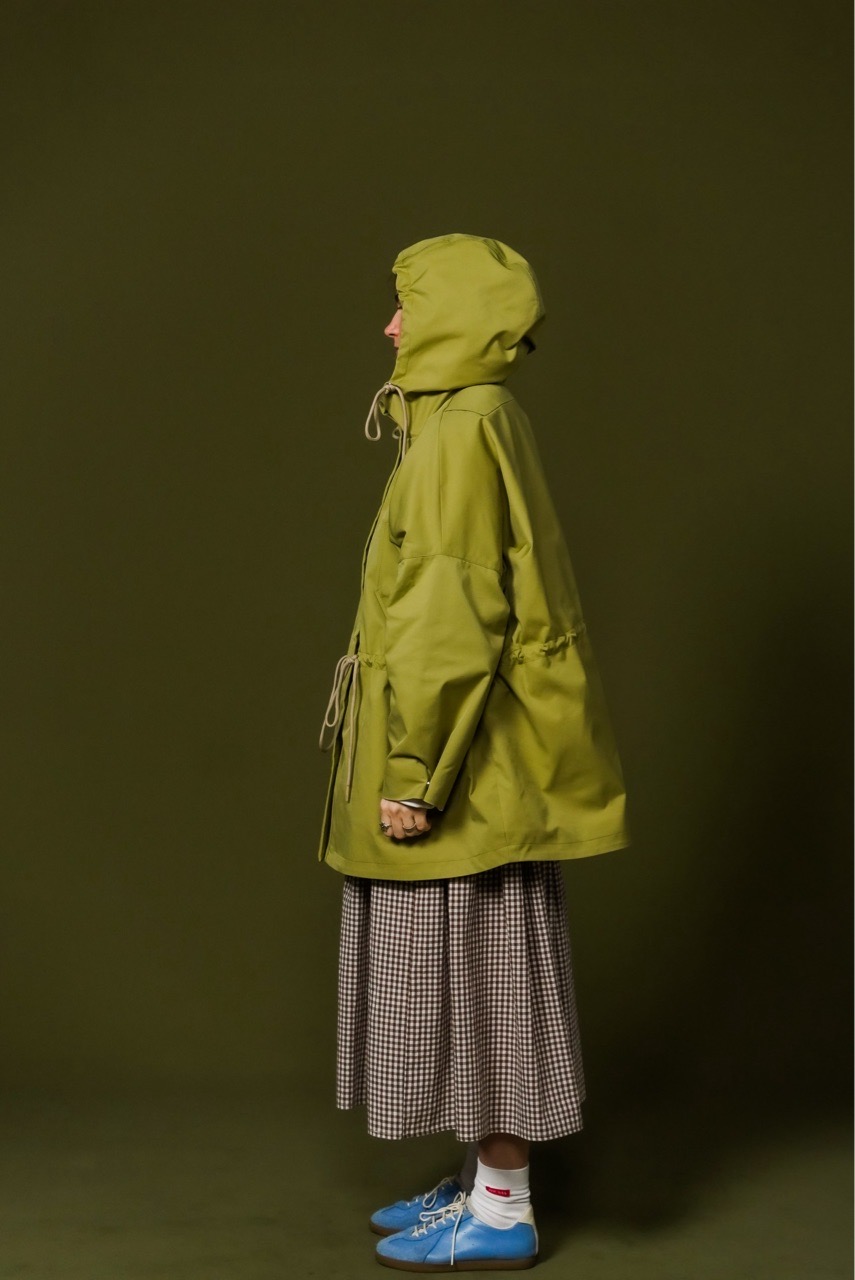 Парка из водоотталкивающей ткани с пропиткой. Изделие идет на подкладке, кулисками можно регулировать посадку. Застегивается на кнопки. Есть капюшон и карманы.