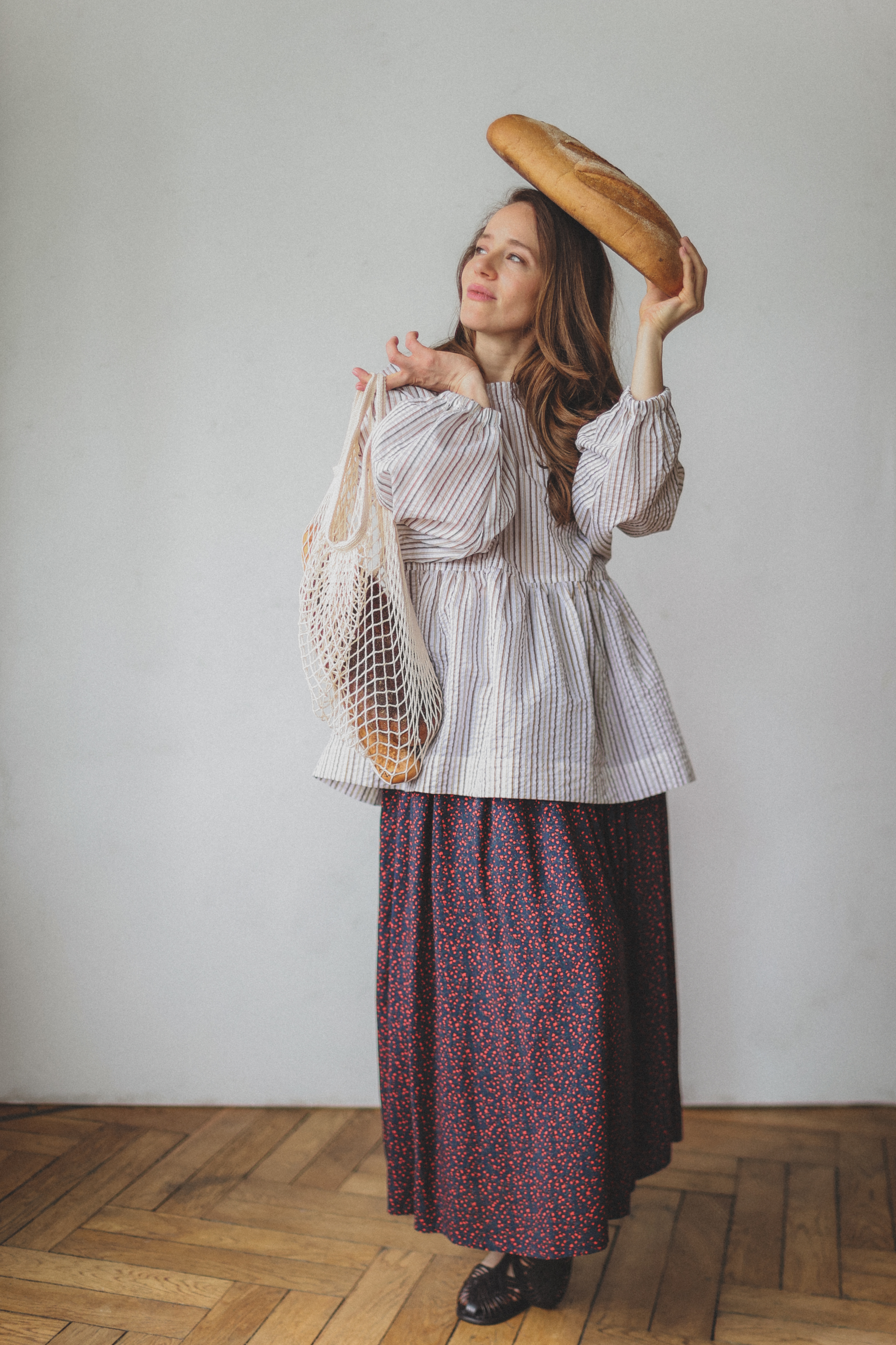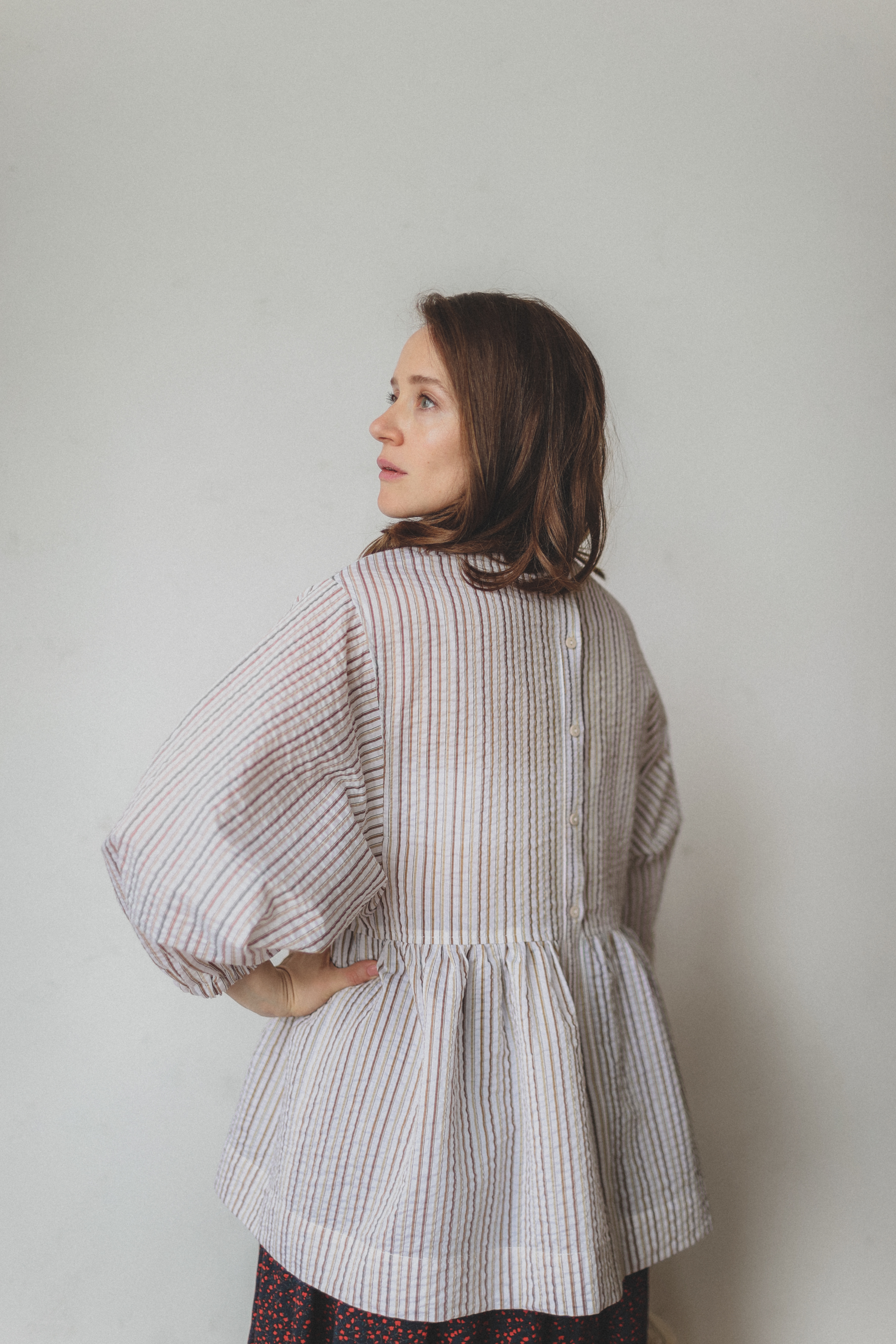 Рубашка с баской в узкую коричневую полоску – купить за 8 900 ₽ | Zoe San