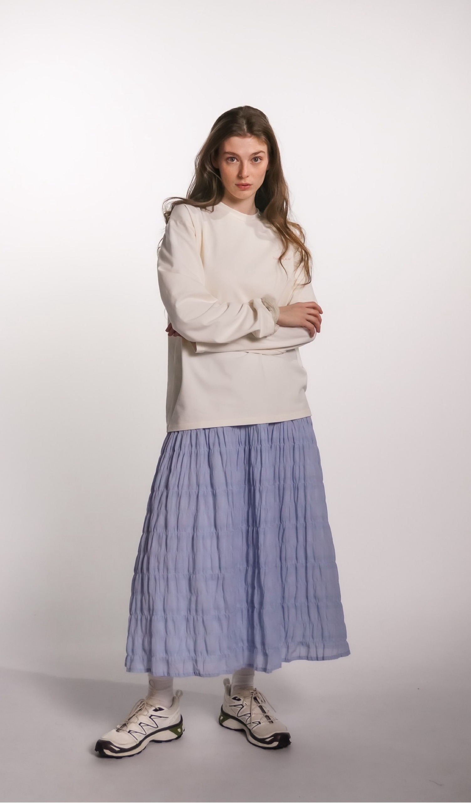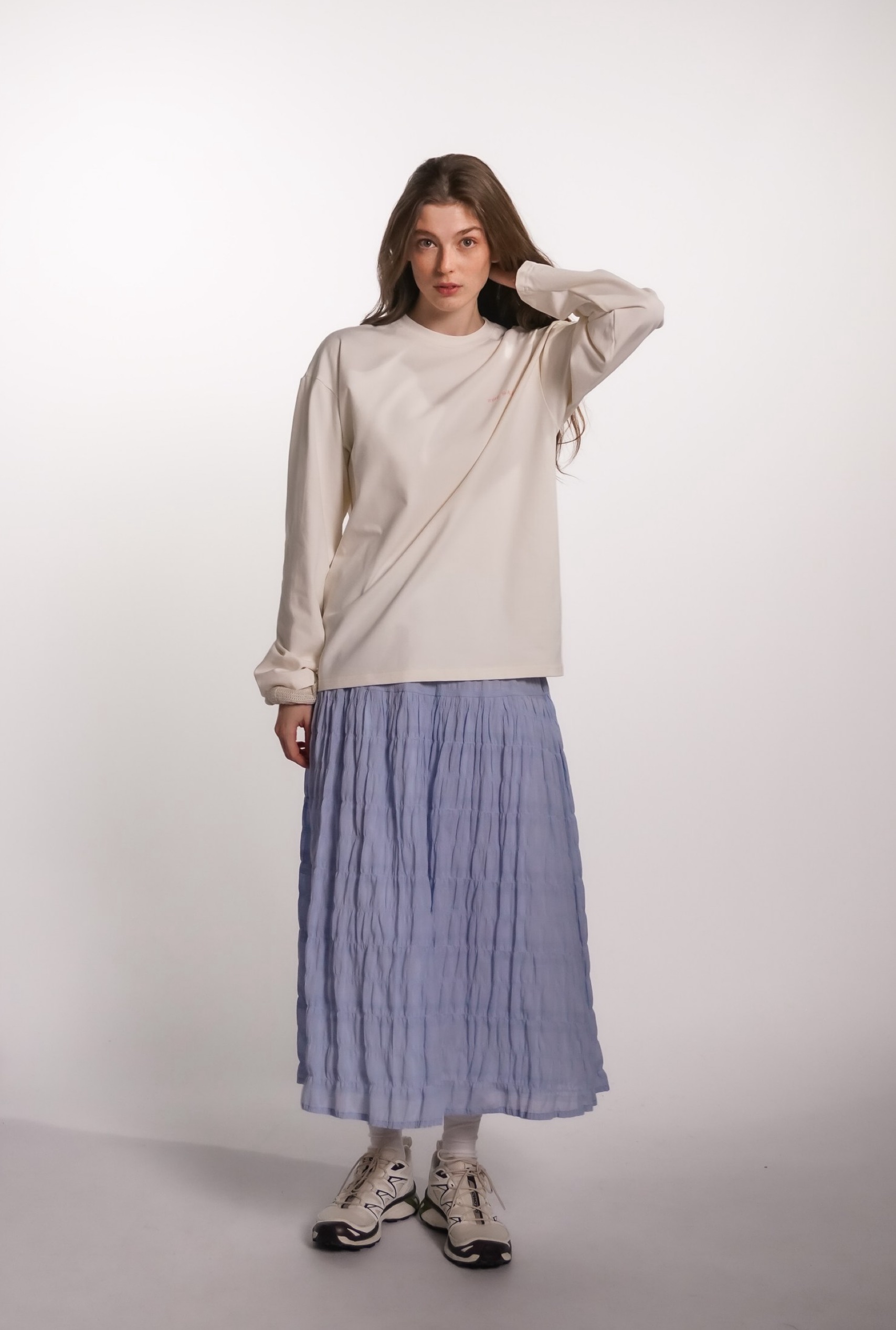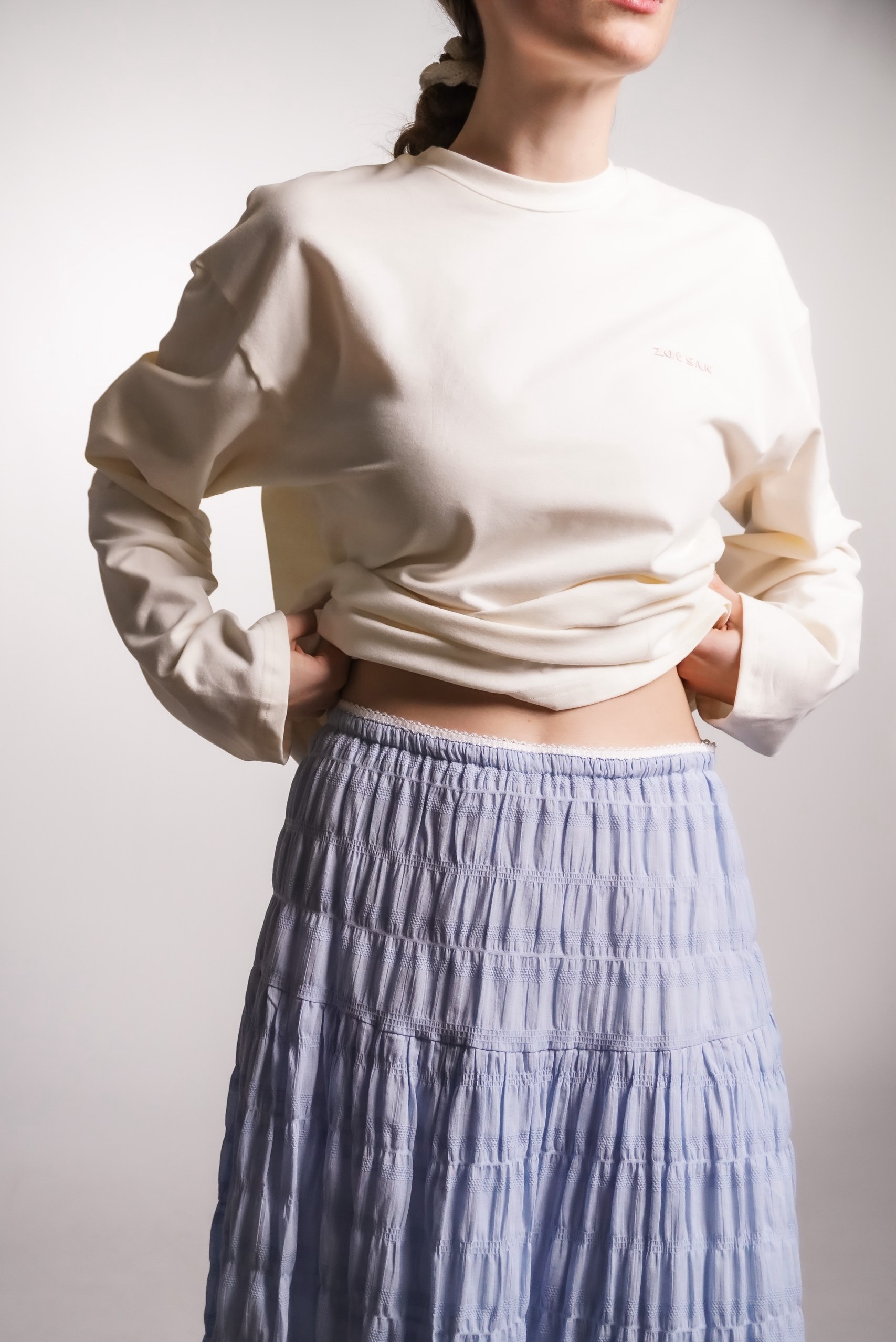 Юбка на кокетке из воздушного батиста, голубая