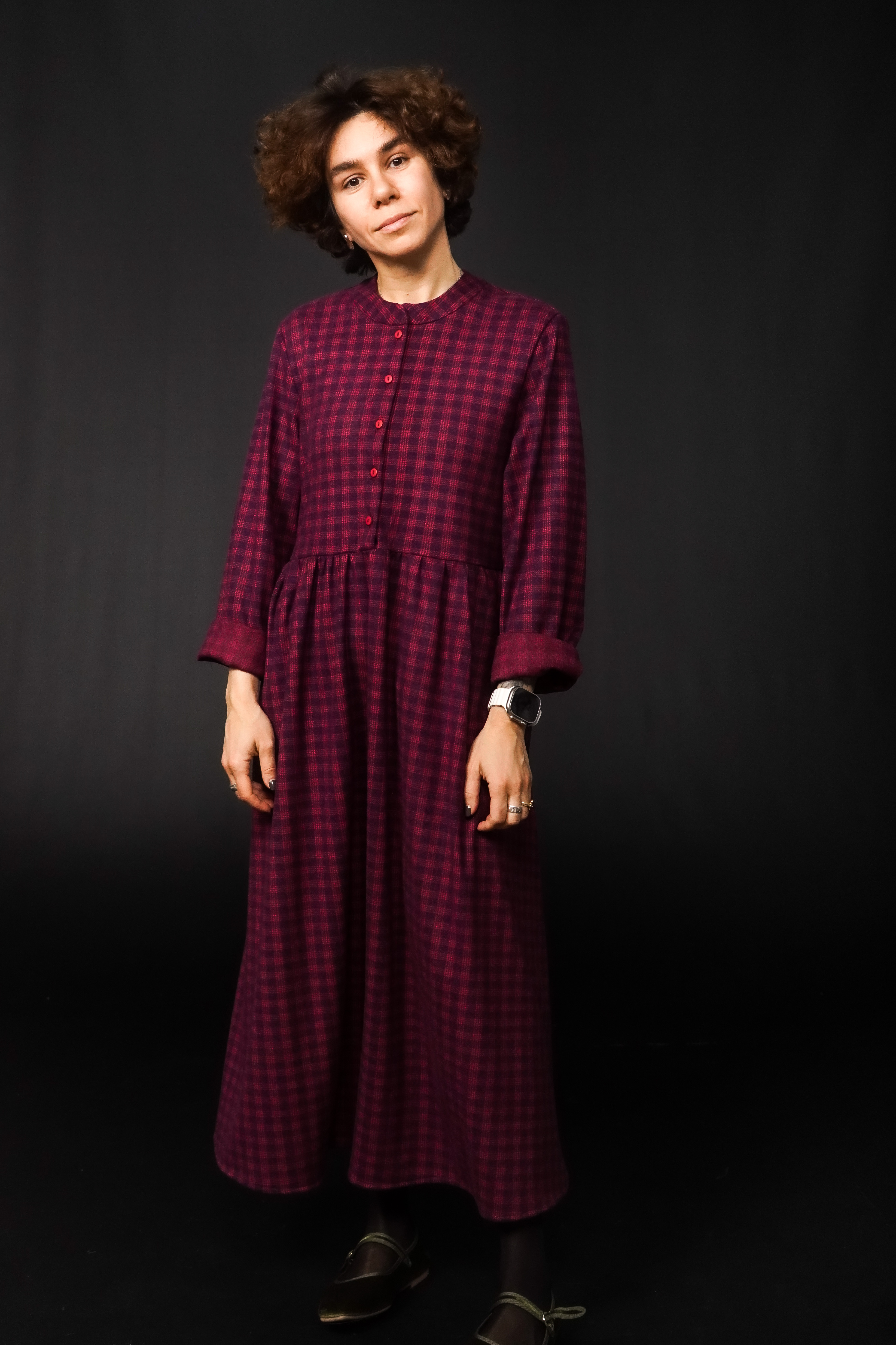 Платье свободного кроя с карманами. Пуговицы расстегиваются.