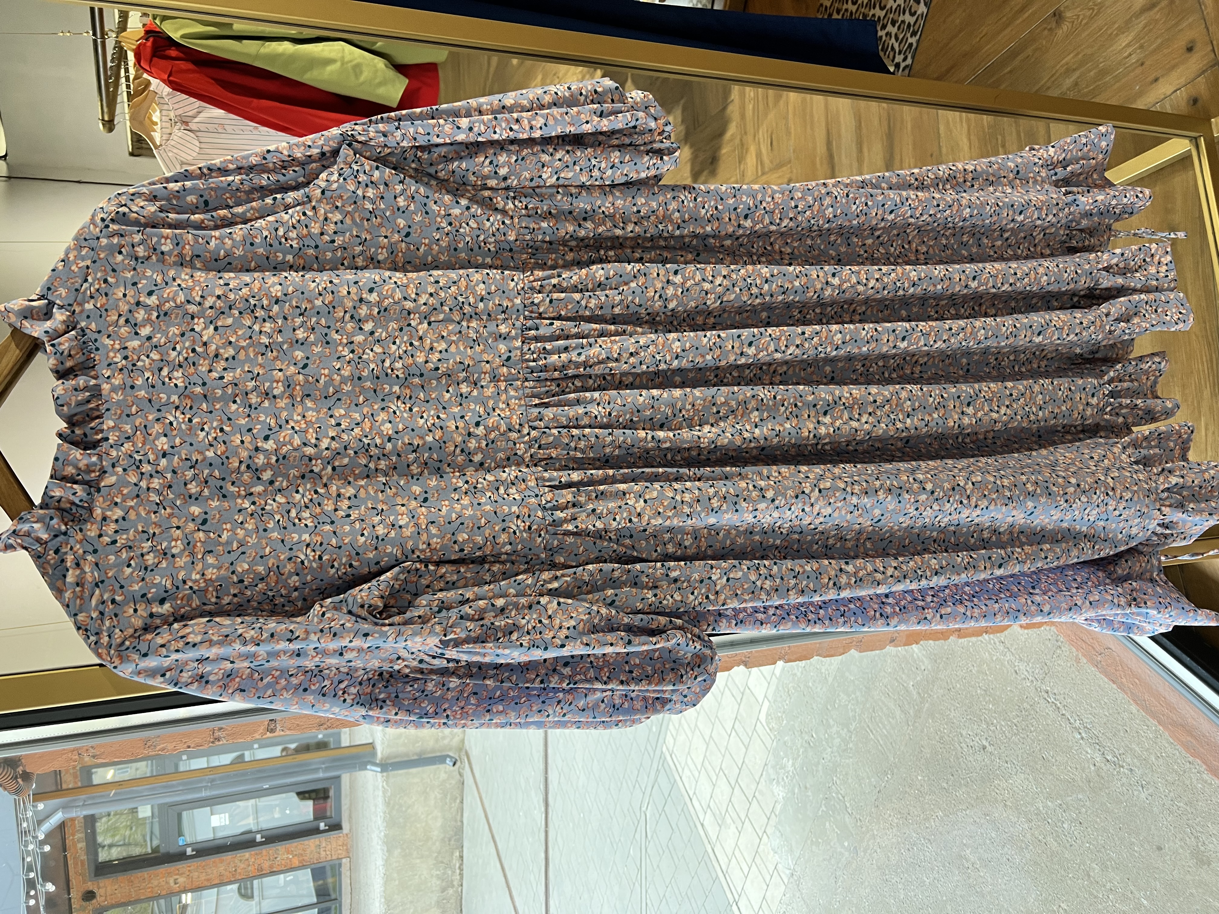 Платье оверсайз "Рюши" из штапеля, оранжевые цветочки на голубом – купить за 11 500 ₽ | Zoe San