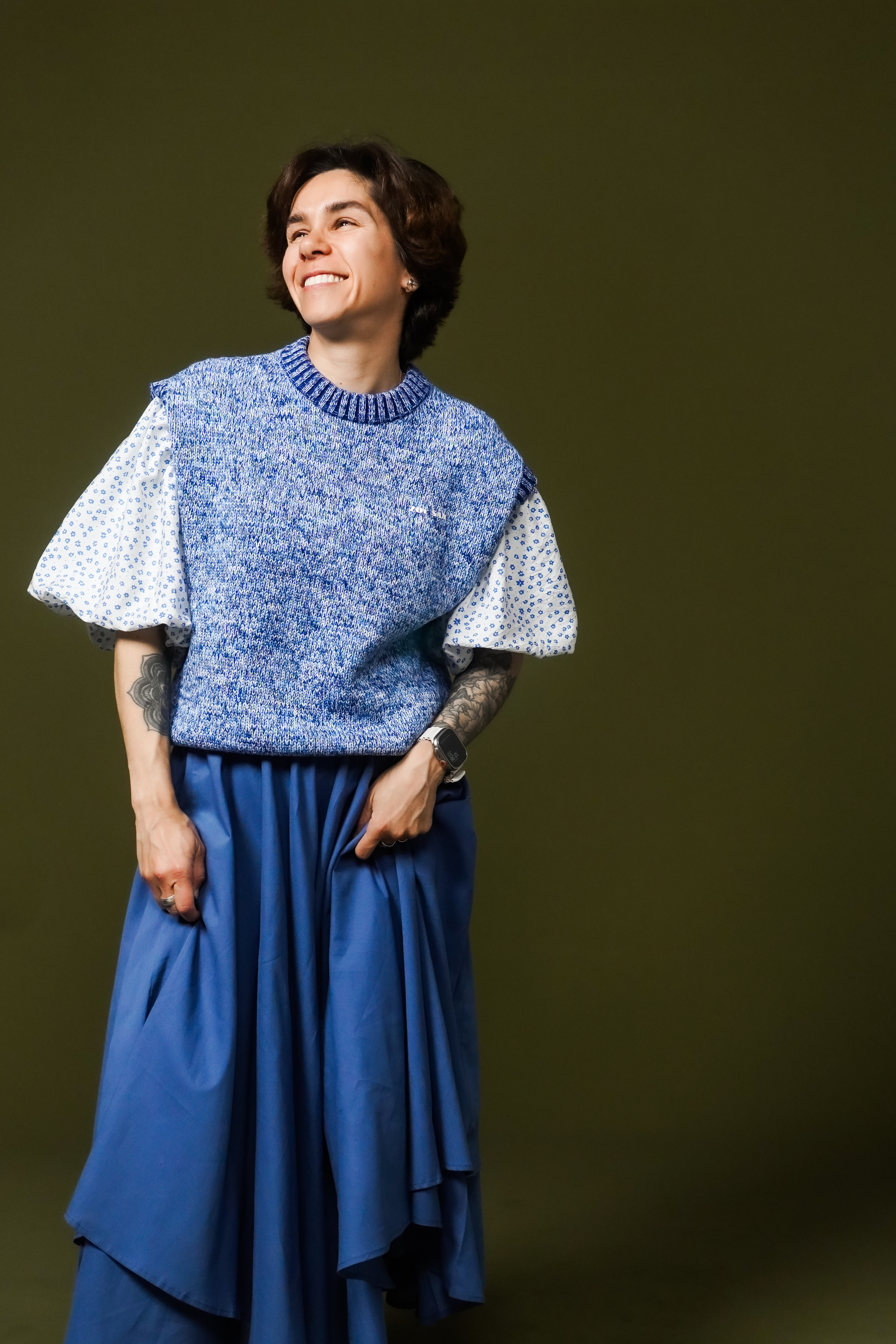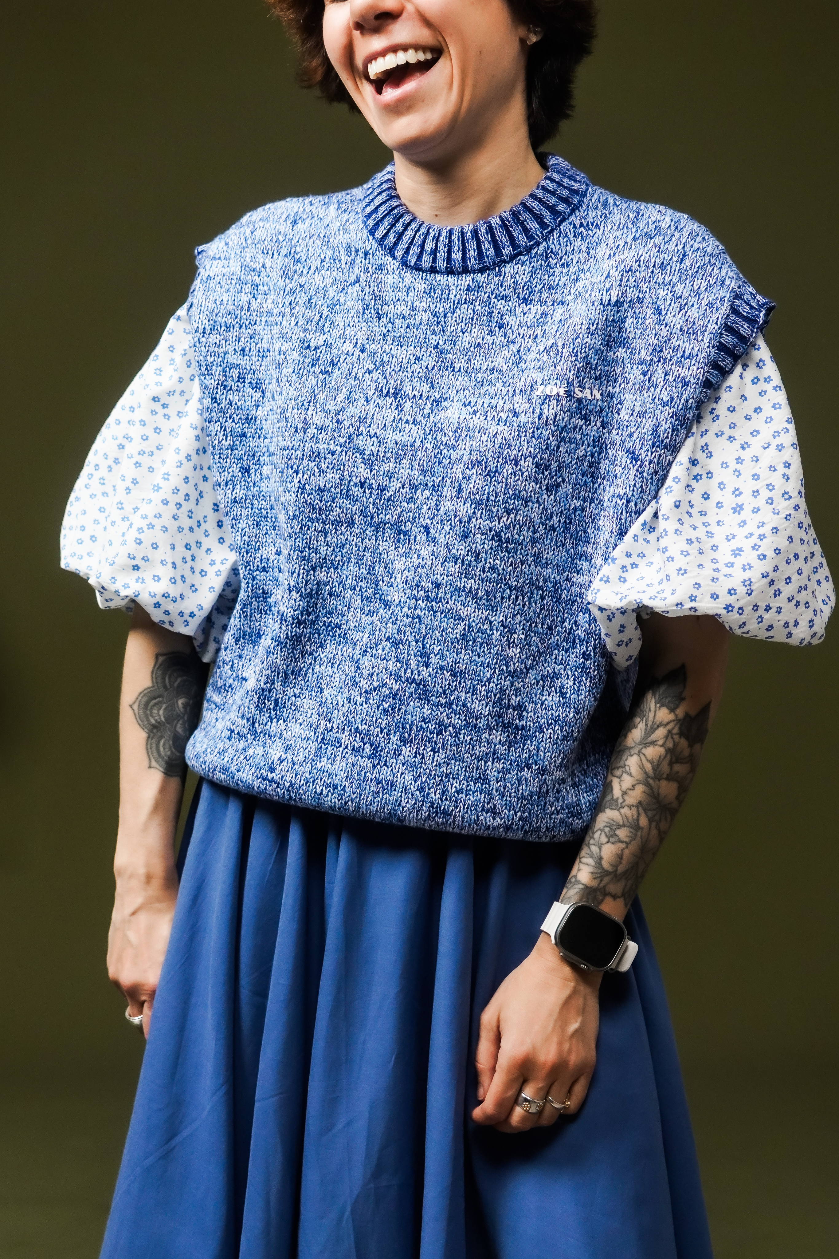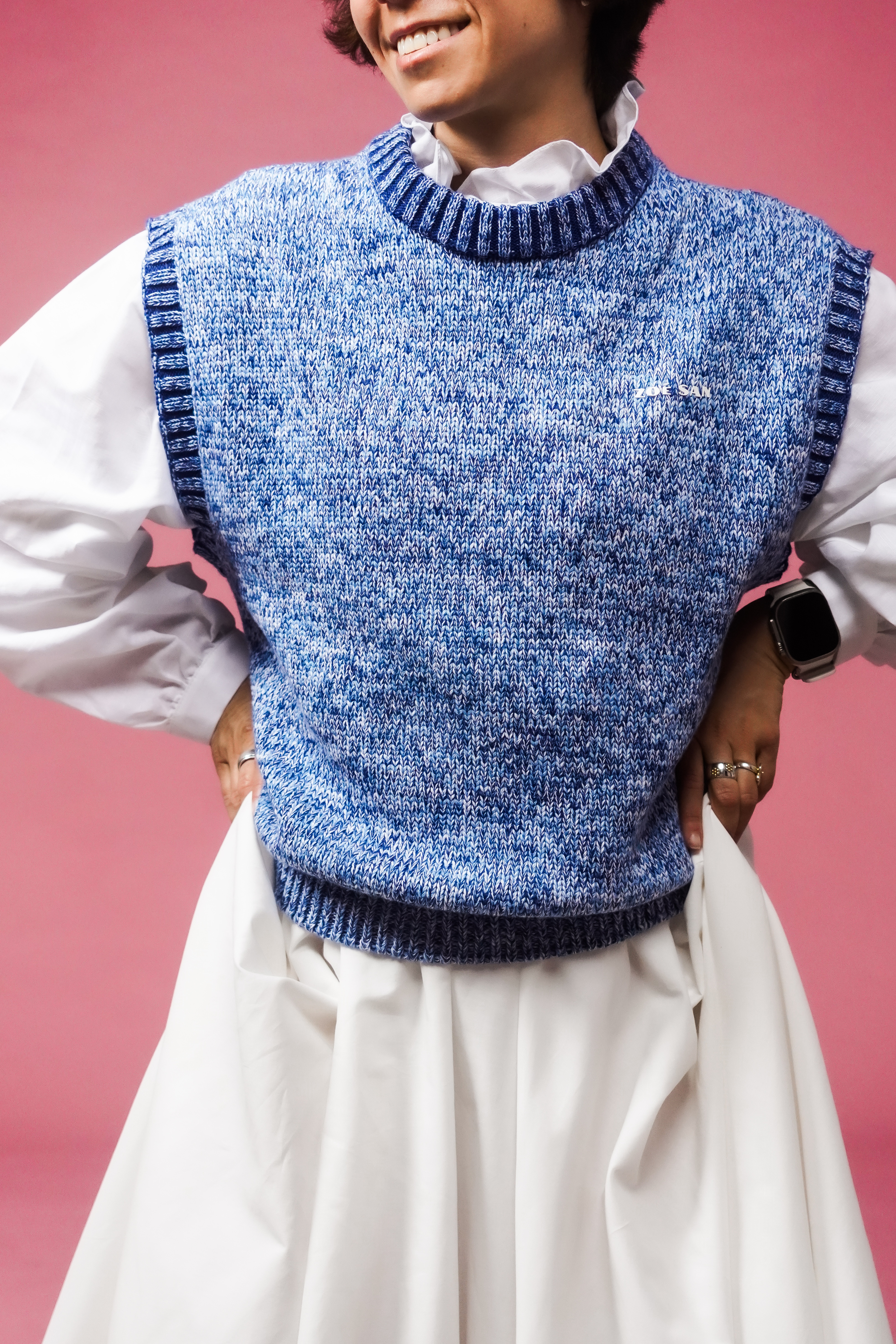 Жилет из хлопкового мулине синего цвета ПРЕДЗАКАЗ