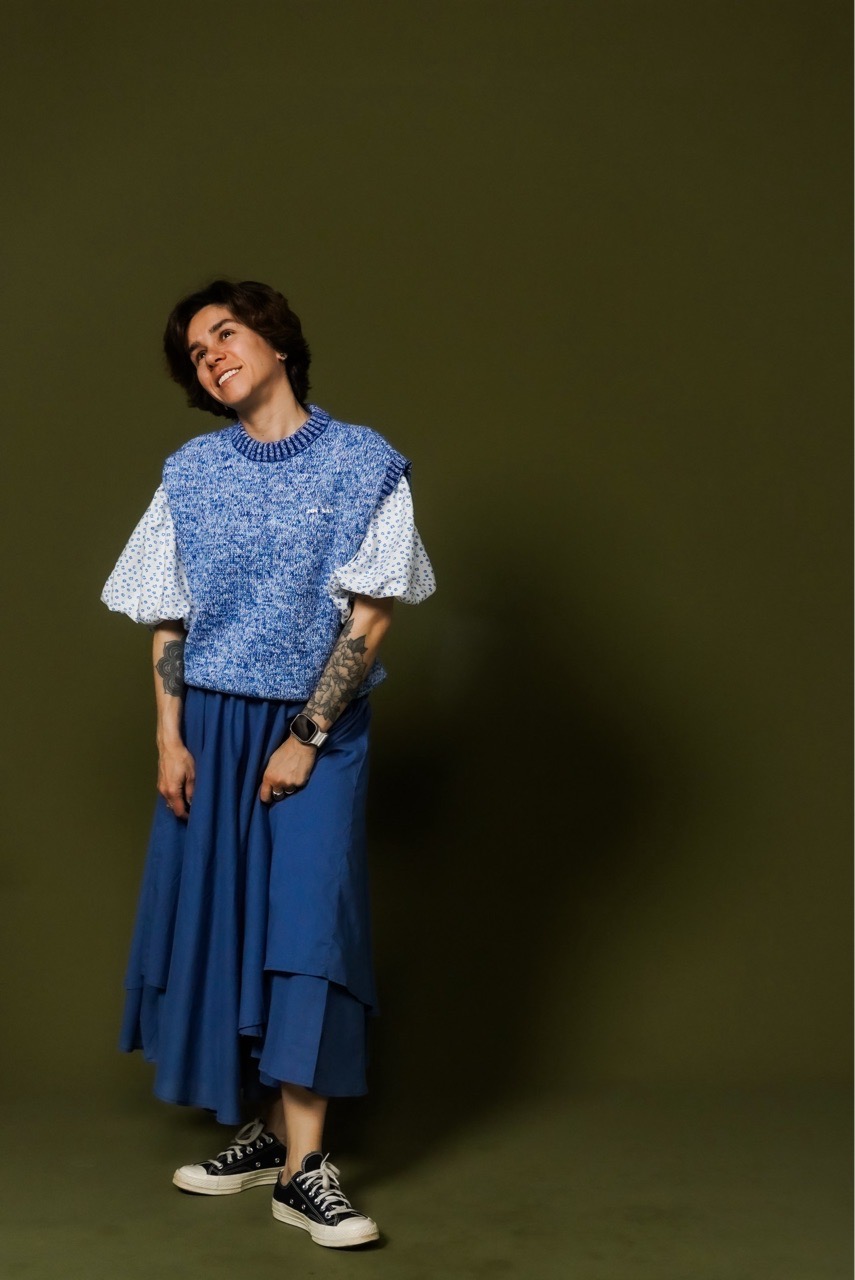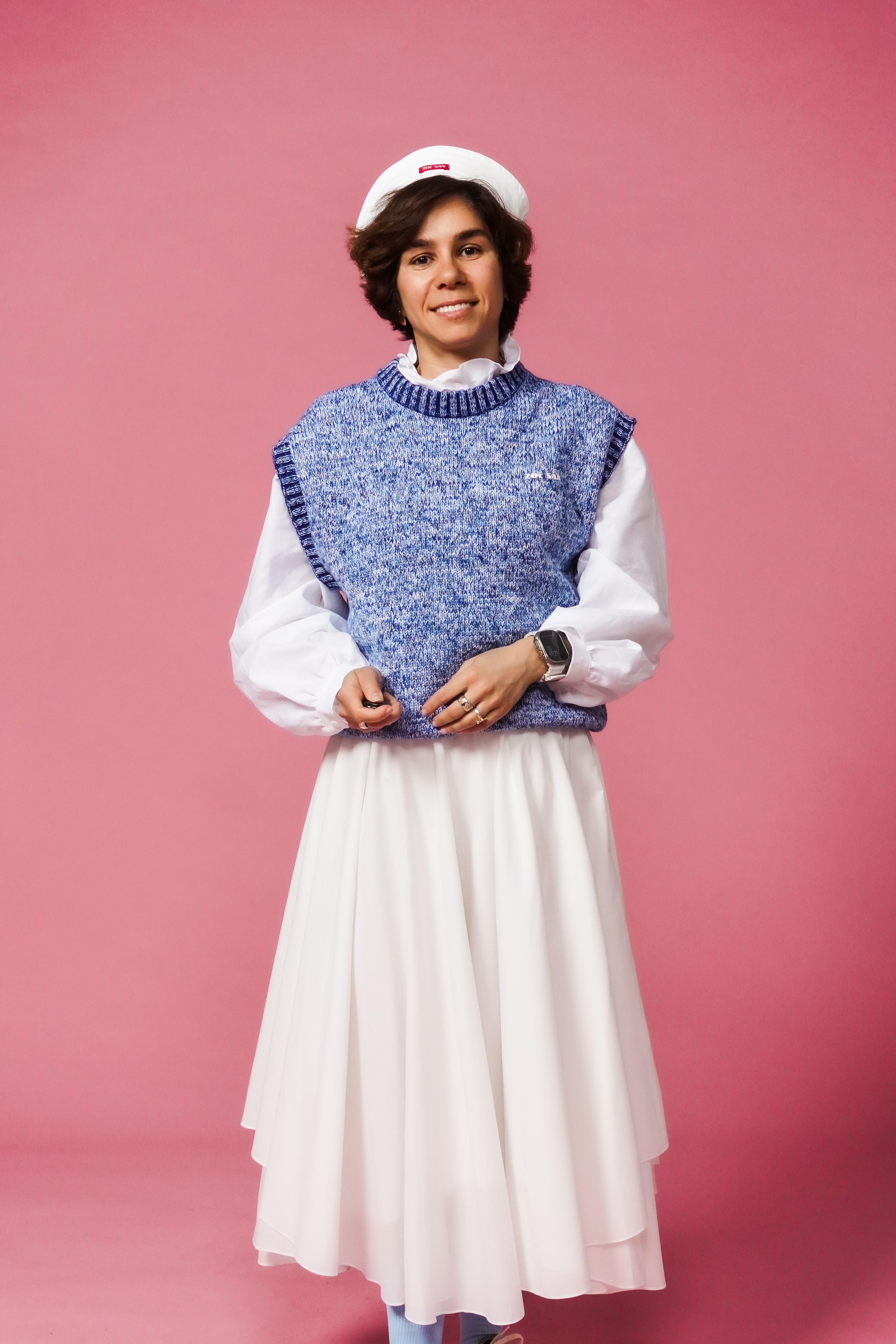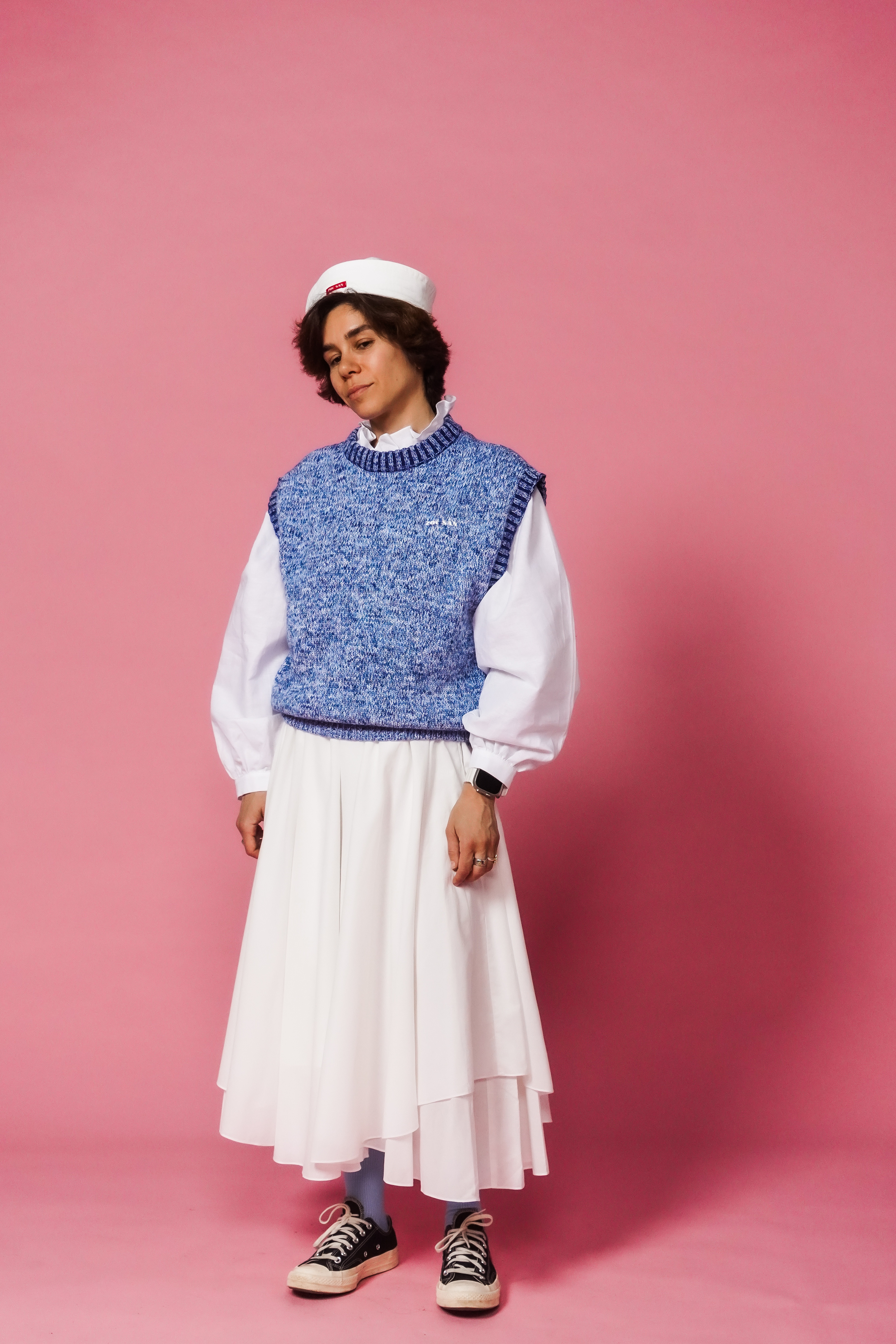 Жилет из хлопкового мулине синего цвета ПРЕДЗАКАЗ