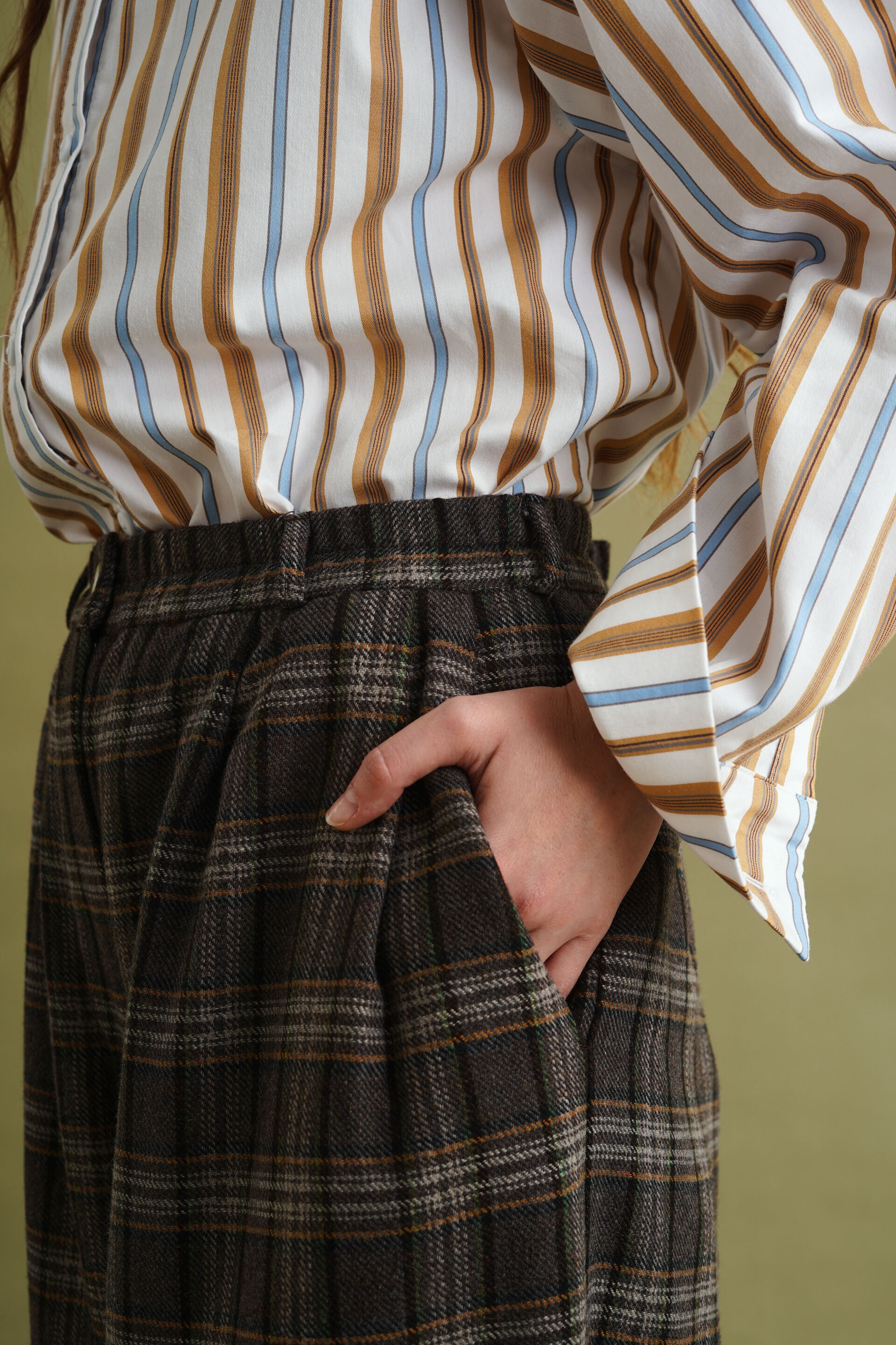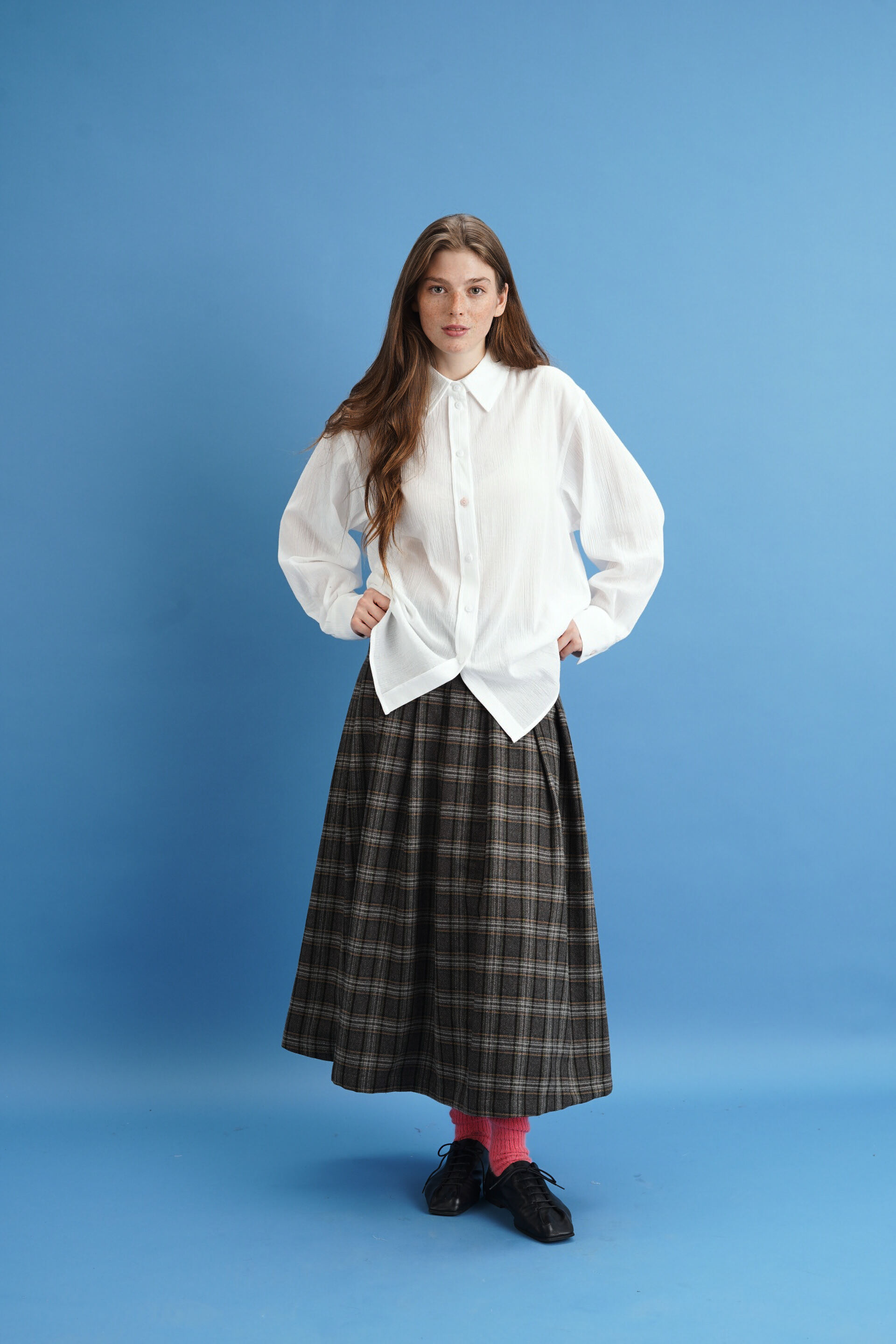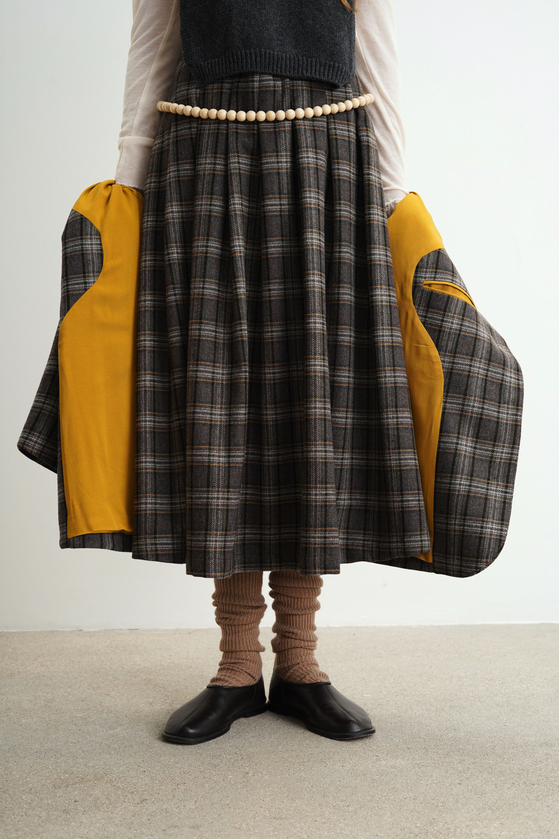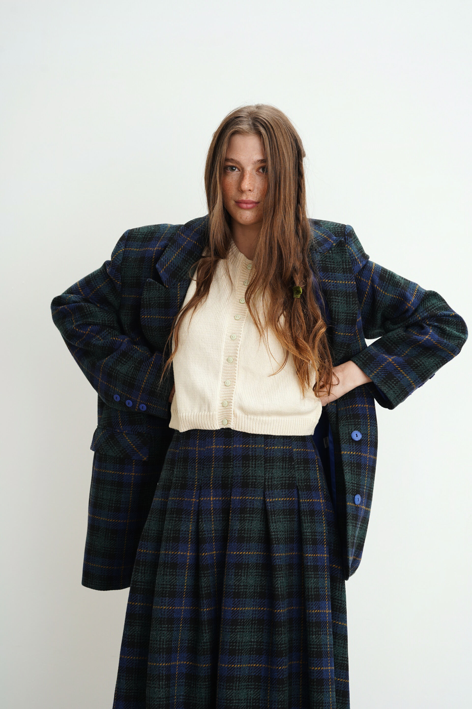 Пиджак однобортный свободного кроя из итальянской смесовой шерсти с контрастной подладкой. Есть карманы.