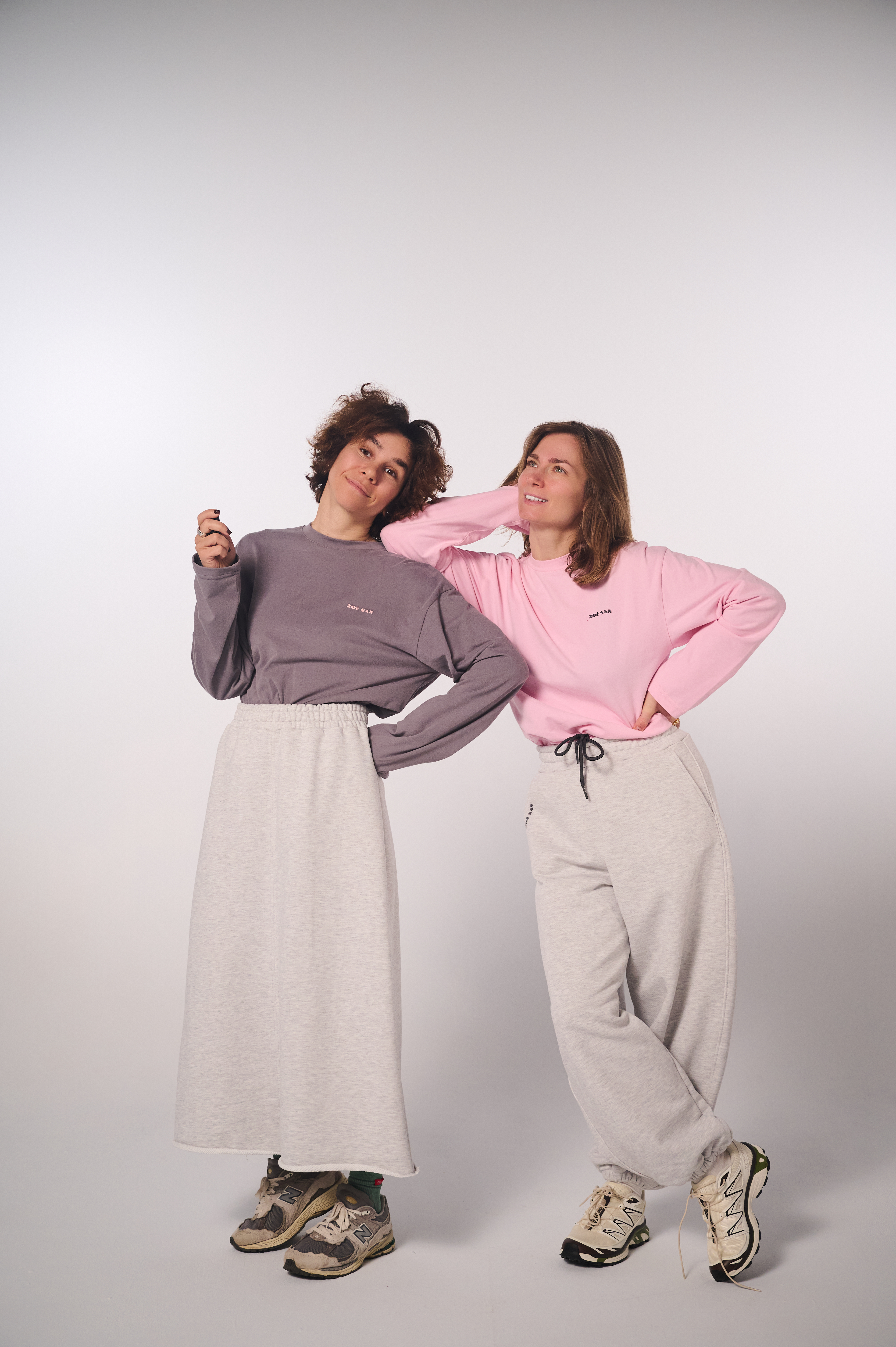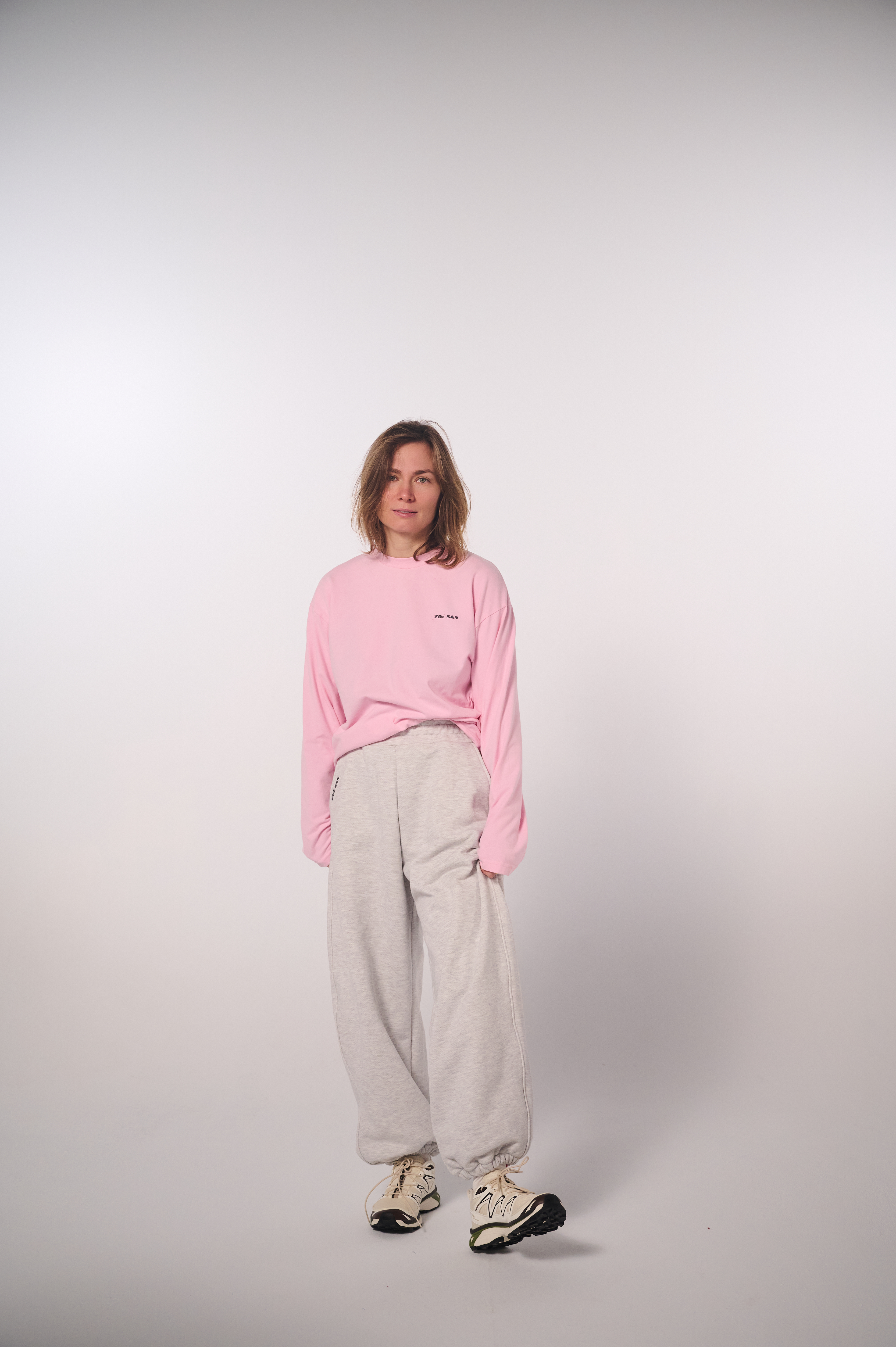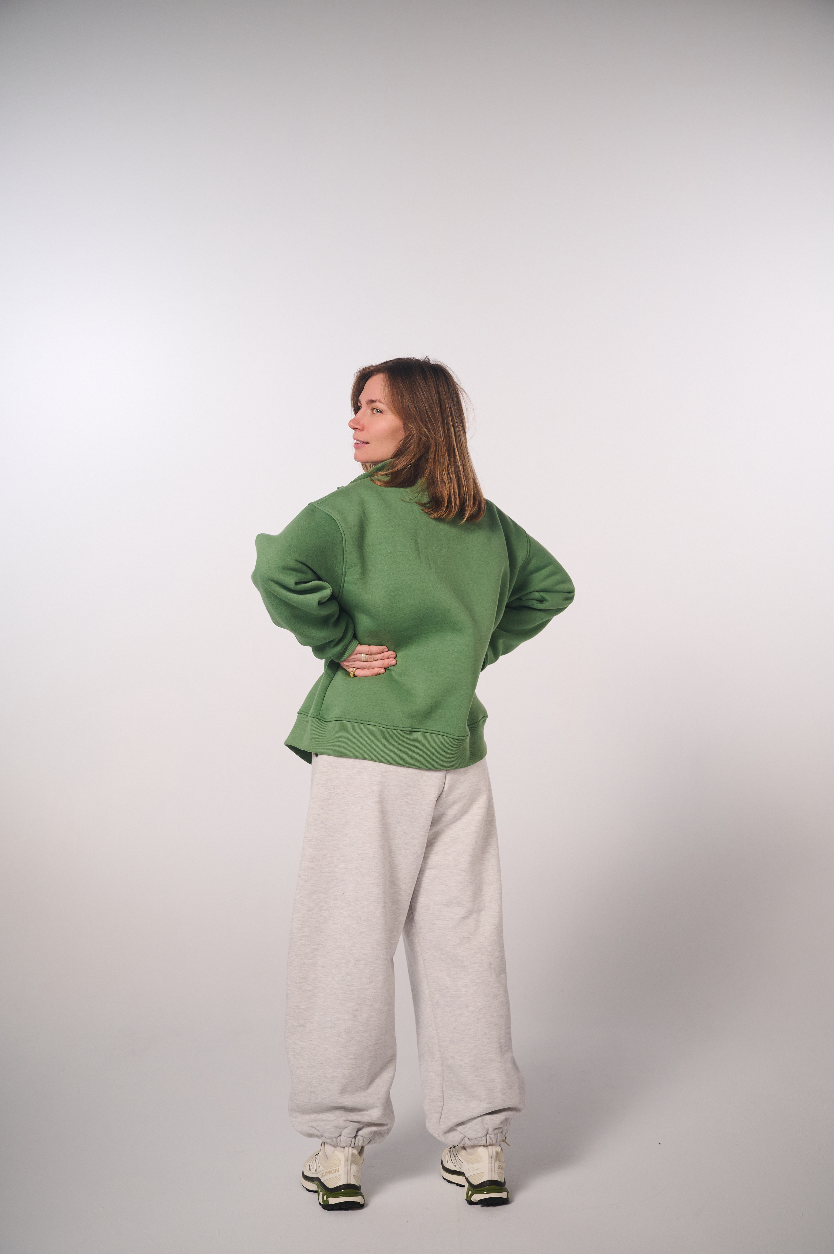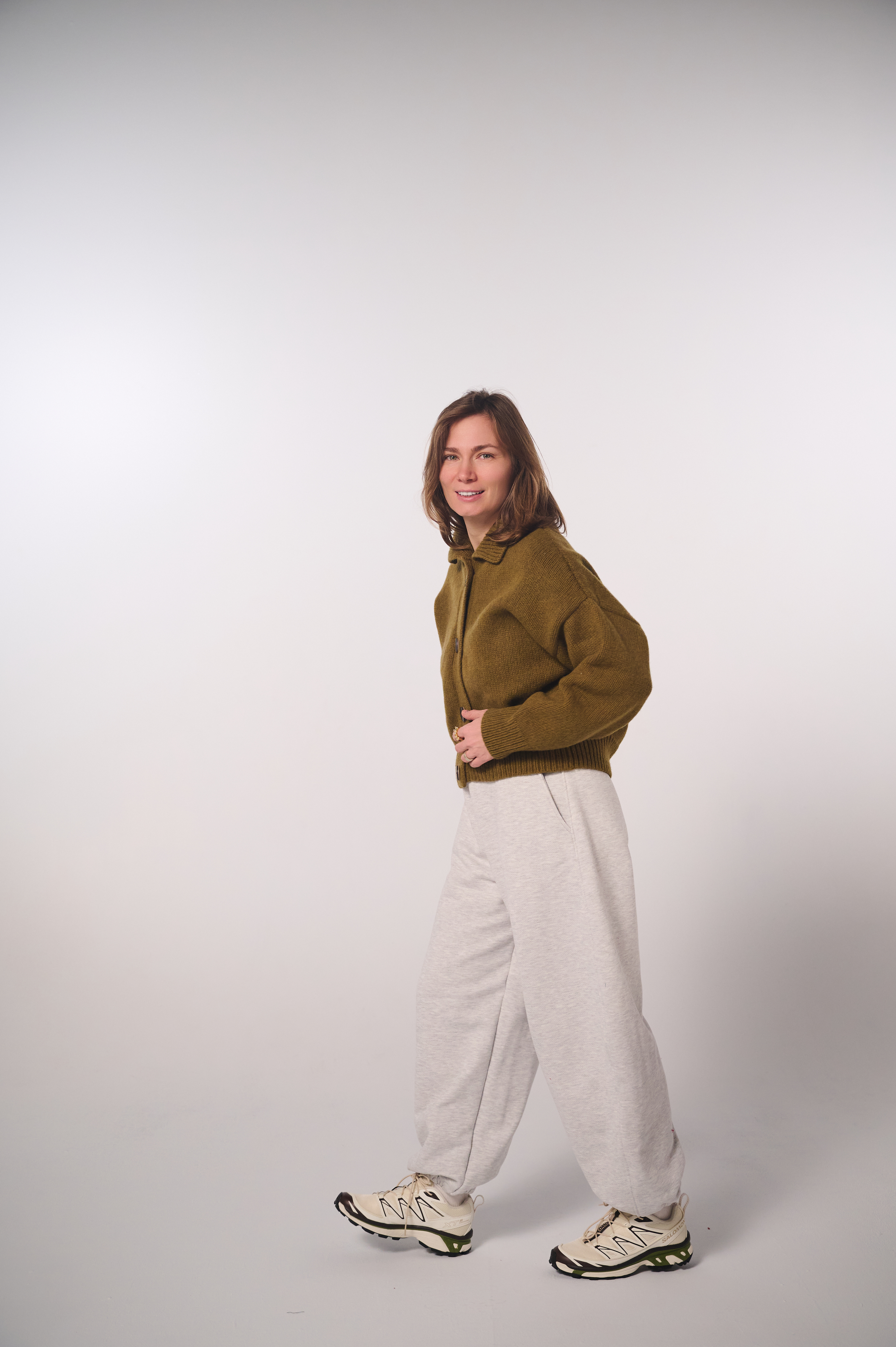 Брюки-бананы из светло-серого футера меланж, без начеса
