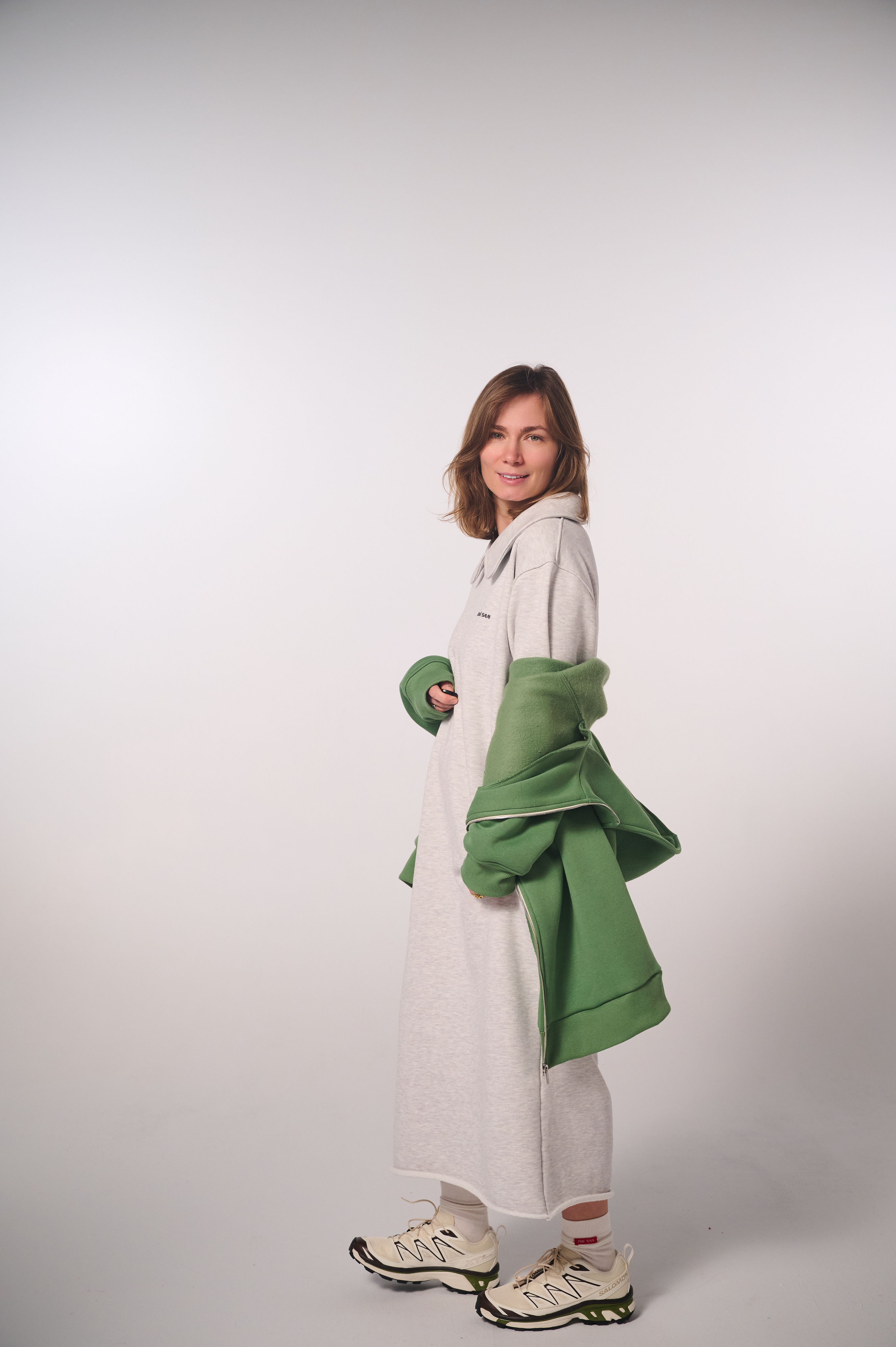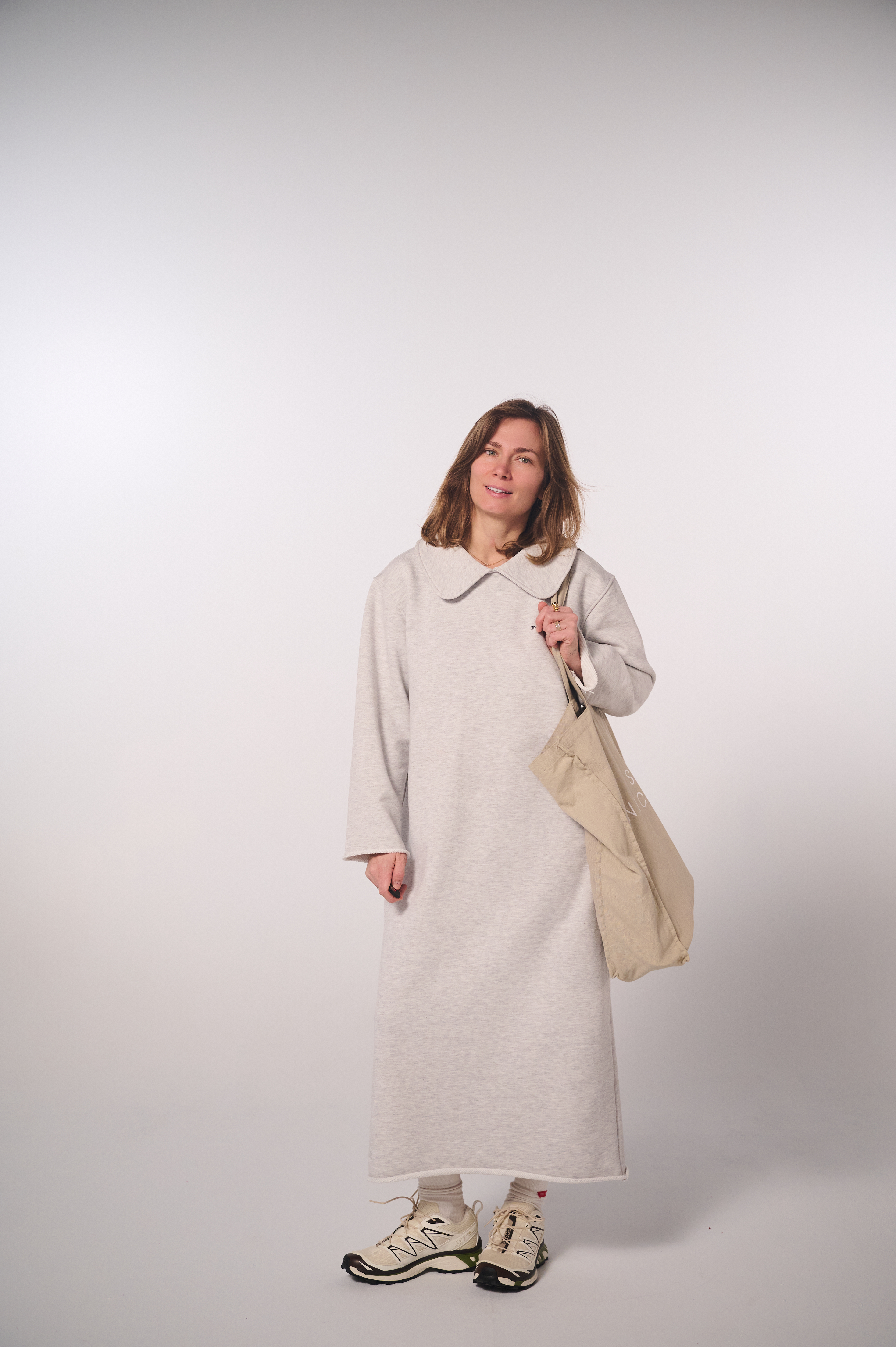 Платье прямого кроя из футера с круглым воротником. Без начеса.