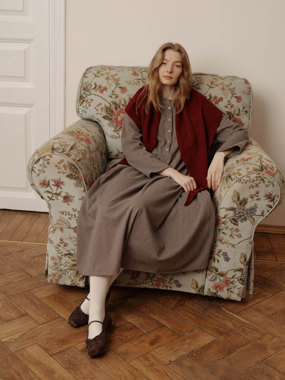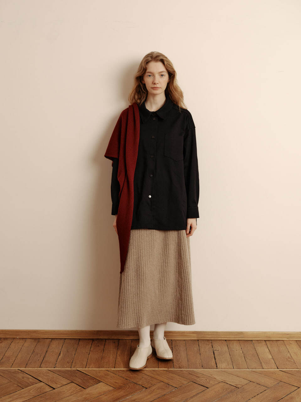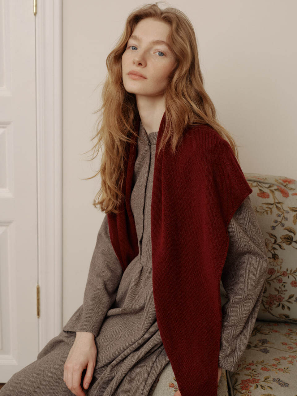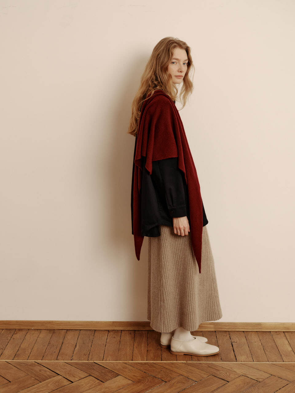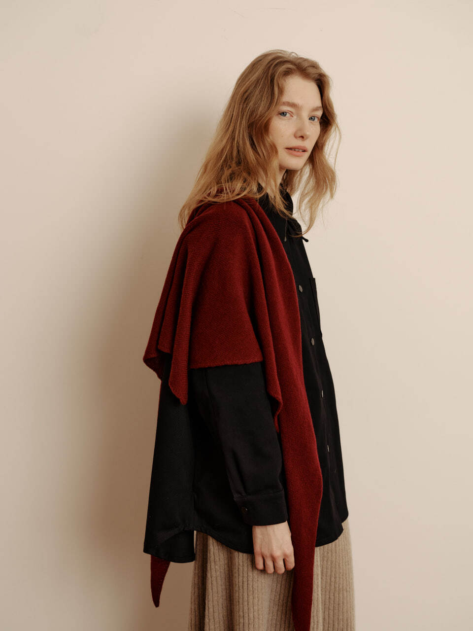 Косынка из кашемира с мериносом винного цвета