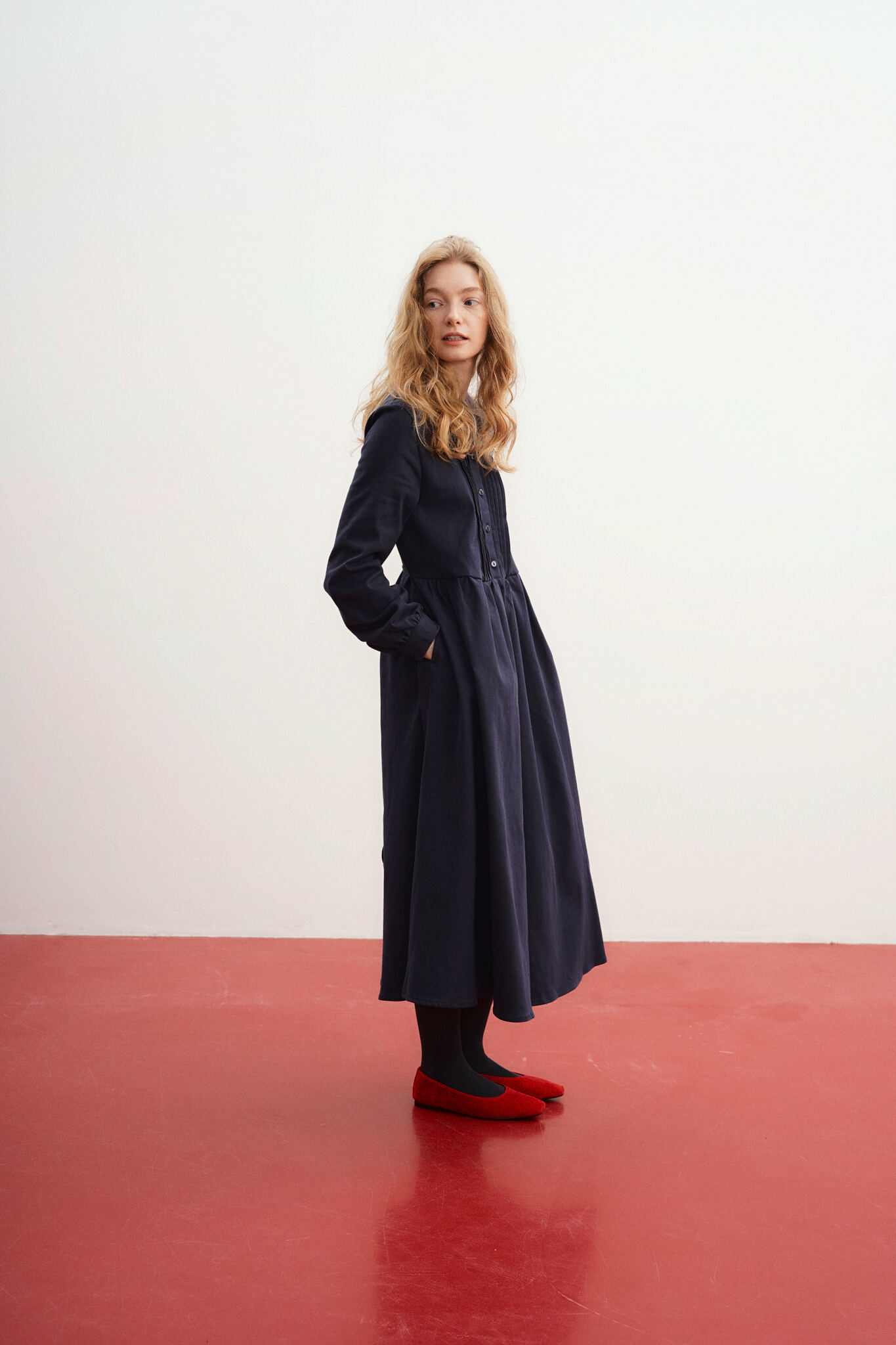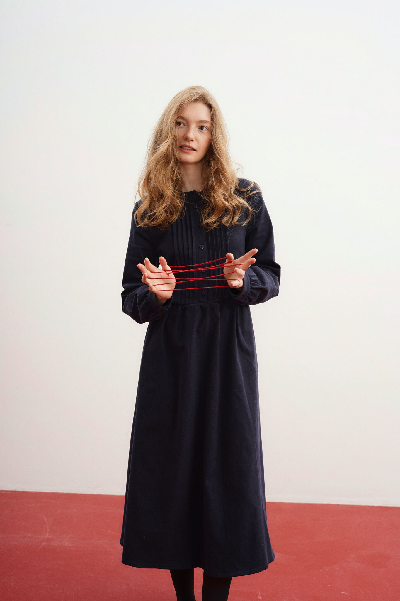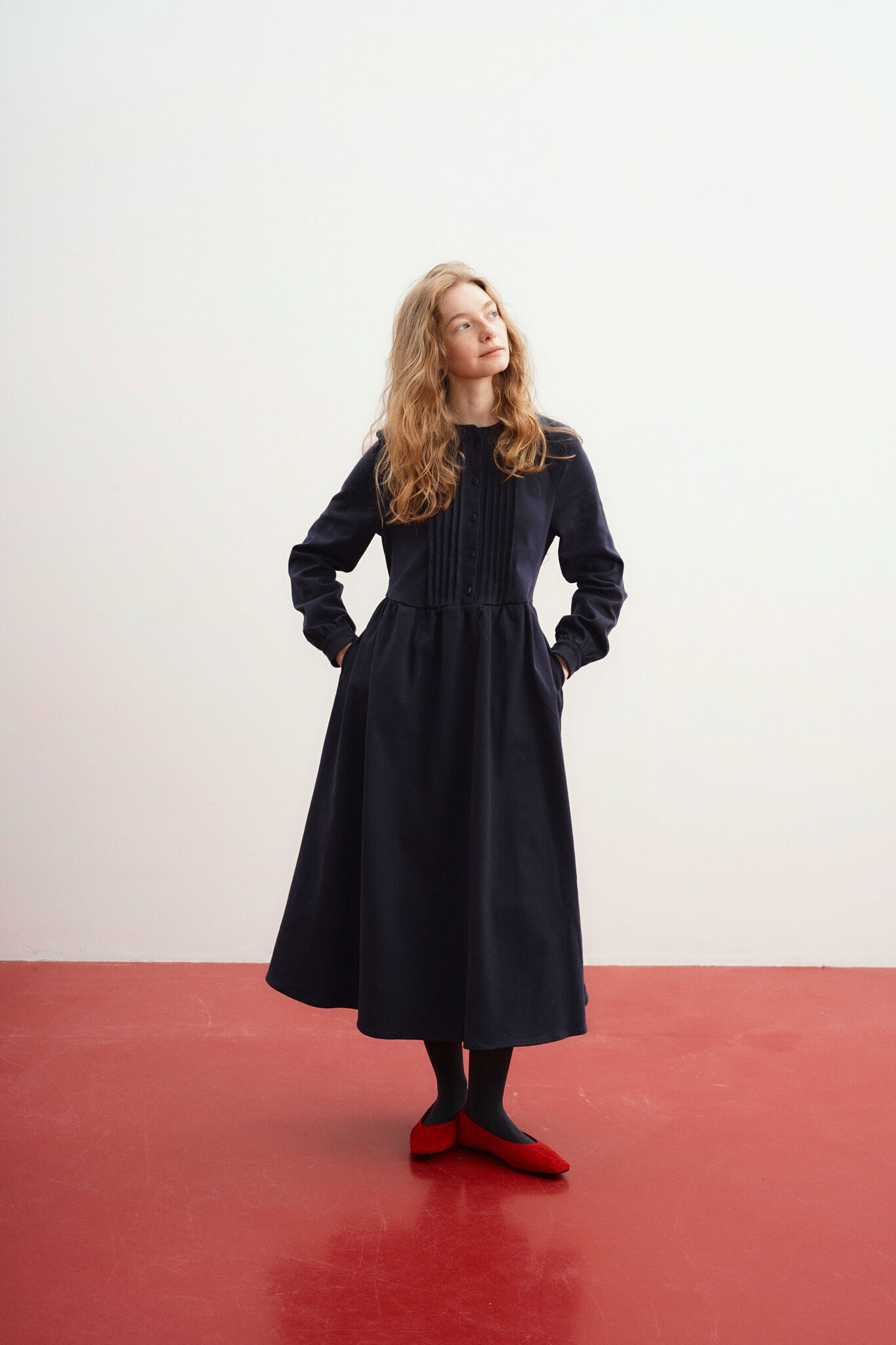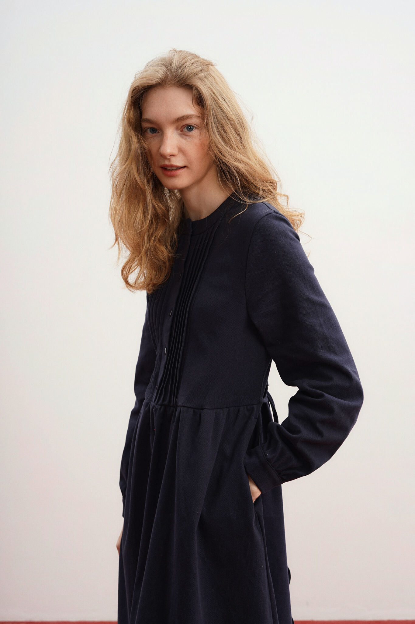 Платье свободного кроя с декоративными защипами на груди.