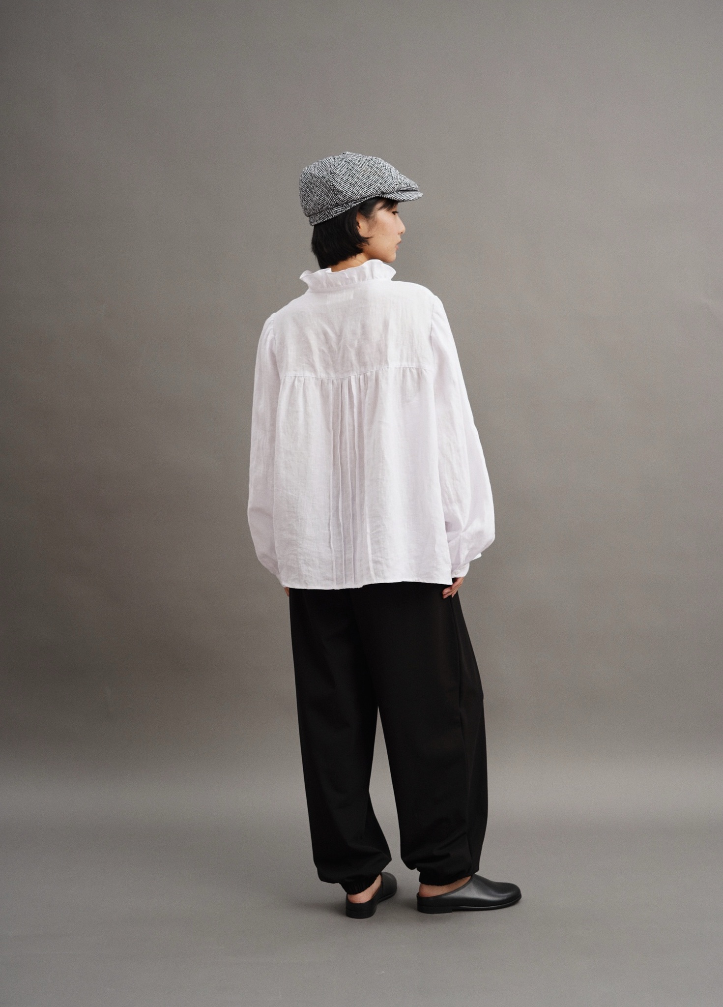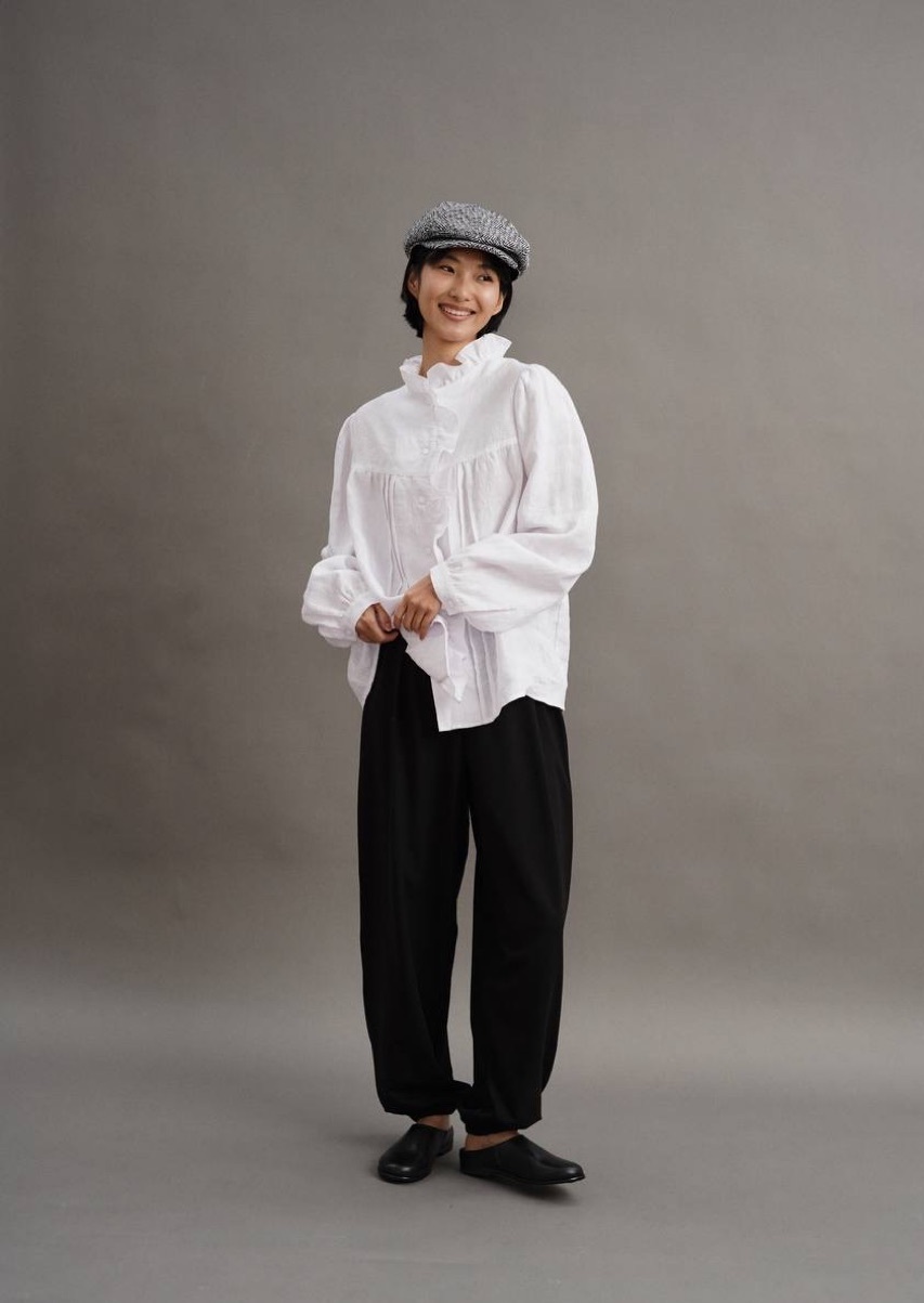 Брюки свободного кроя, пояс на резинке, внизу штанин сборка на резинке.