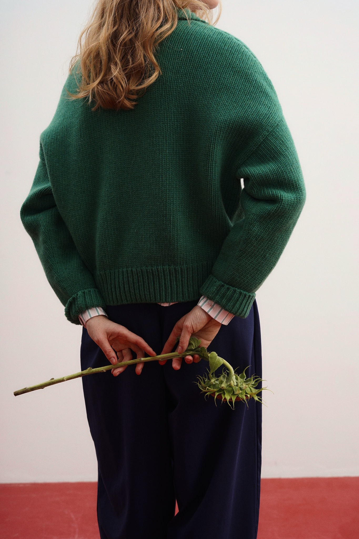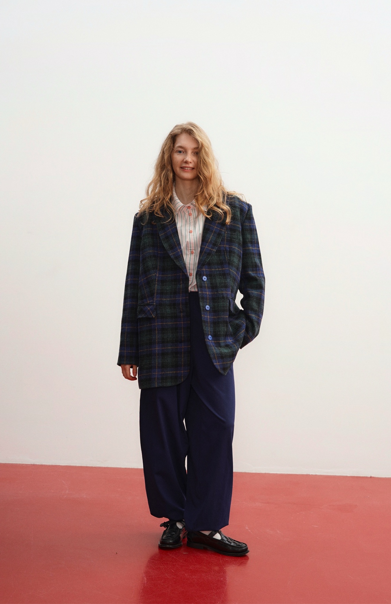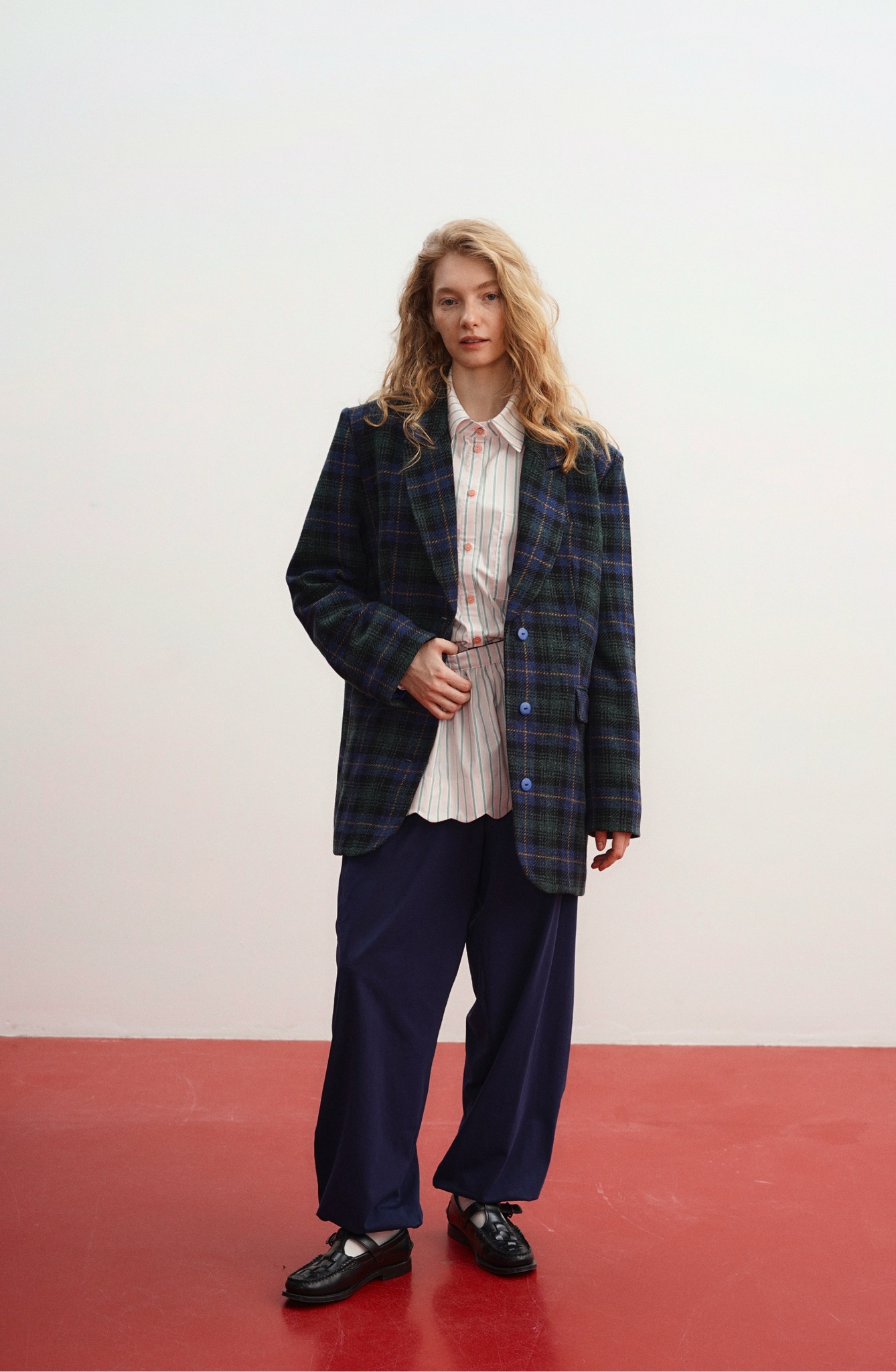 Брюки свободного кроя, пояс на резинке, внизу штанин сборка на резинке.