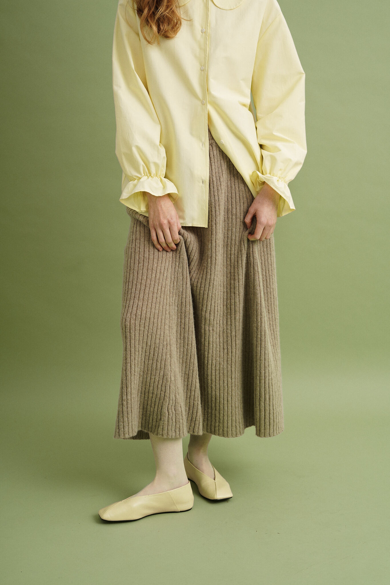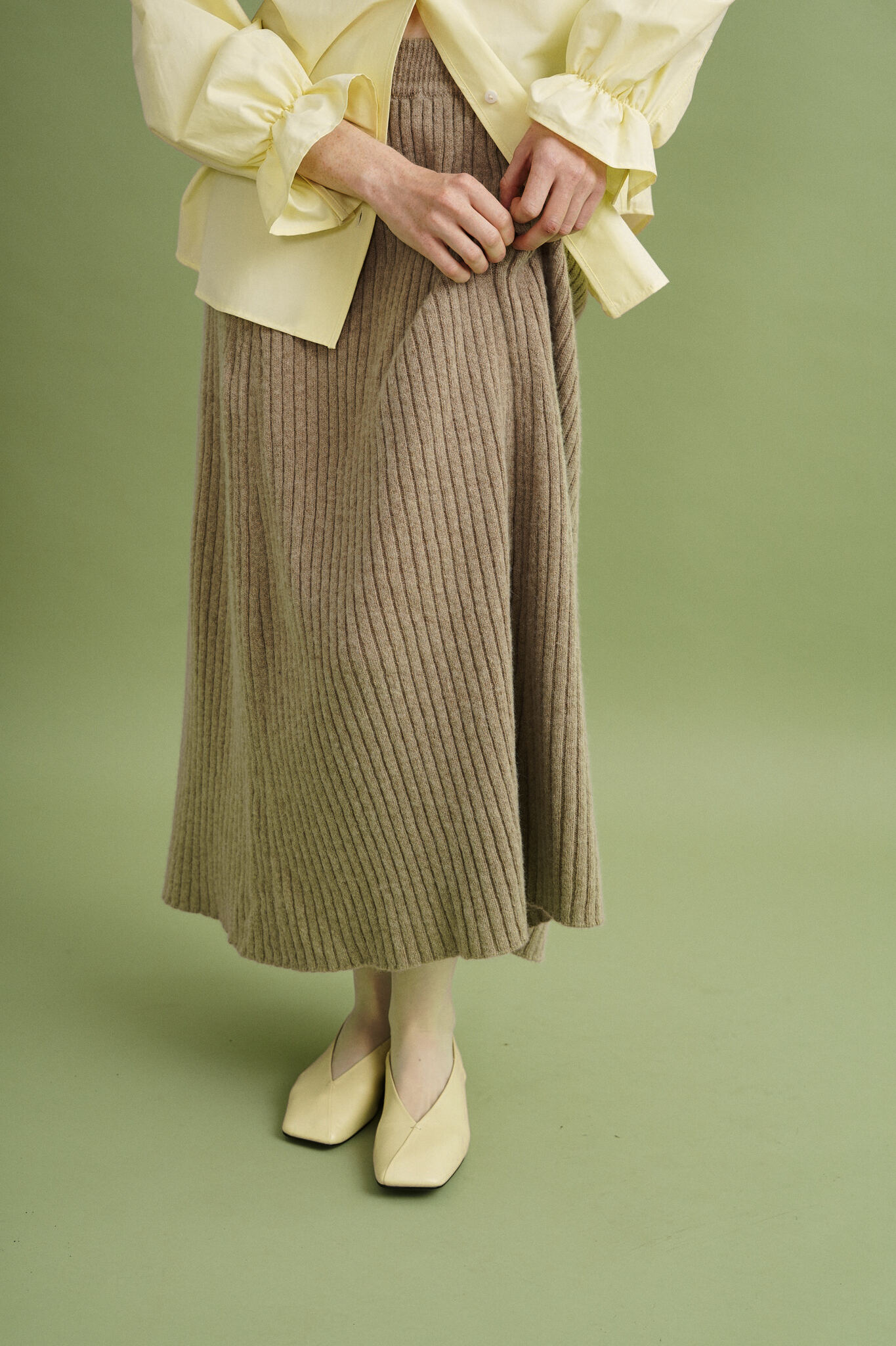 Юбка-трапеция резинкой из итальянской альпака с мериносом. Мягкая, легкая и при этом очень теплая. Имеет трикотажный пояс, который хорошо растягивается и совершенно не давит на живот. Размер оверсайз, который подойдет от 42 до 48.